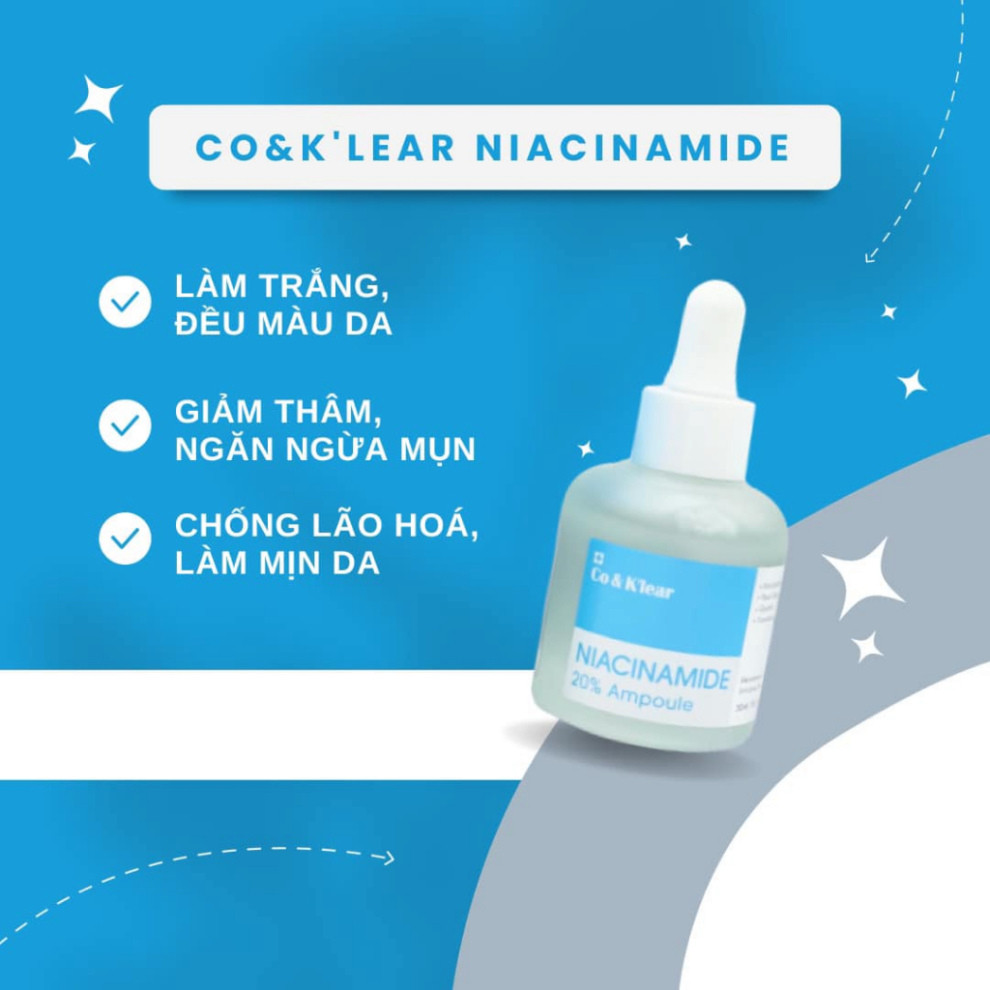 Serum Co & Klear Niacinamide 20% Ampoule hỗ trợ làm mờ thâm nám, trắng sáng làn da 30ml Nhathuocanhan