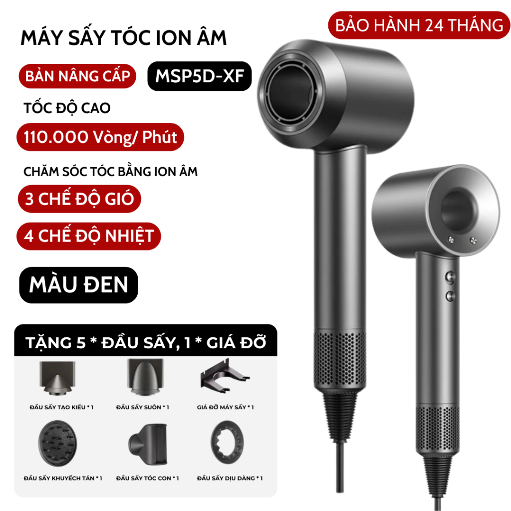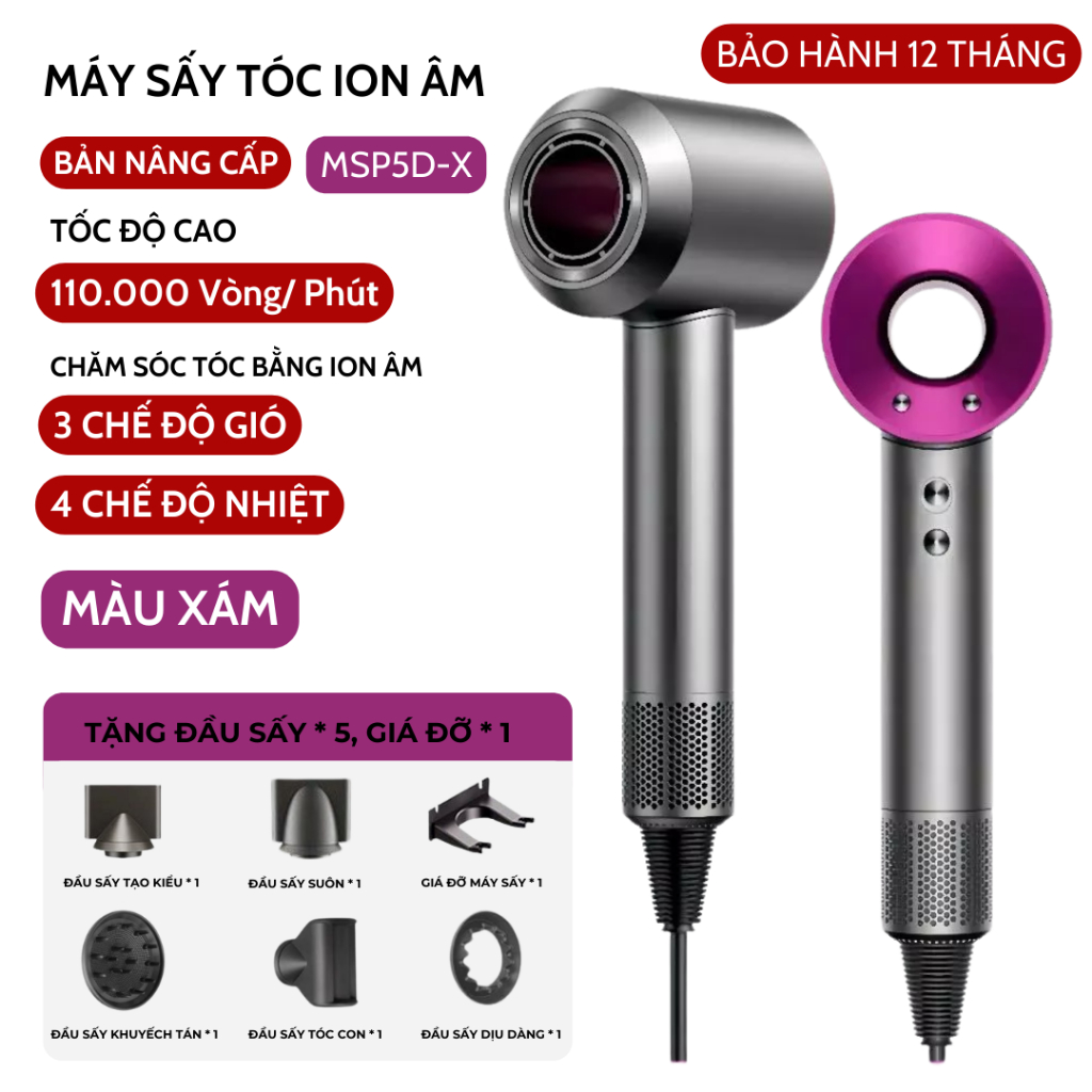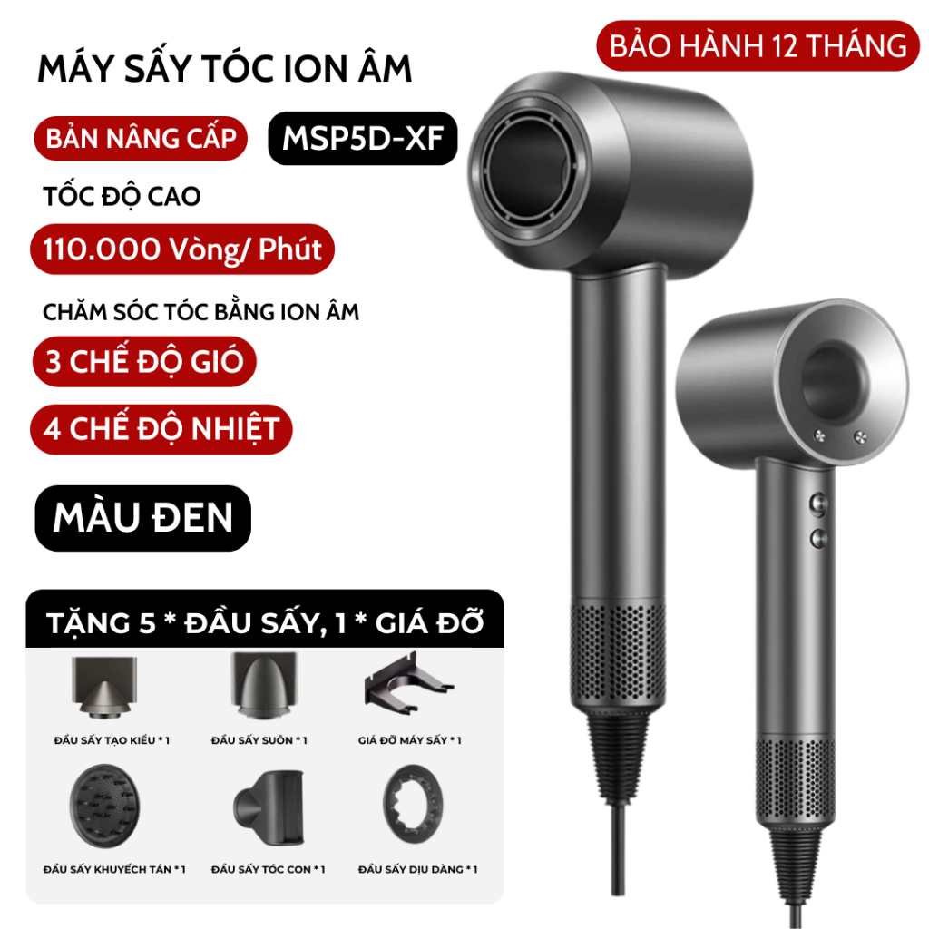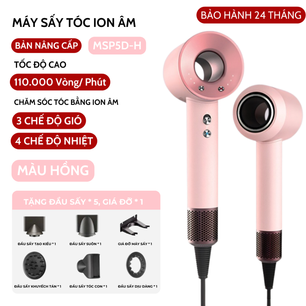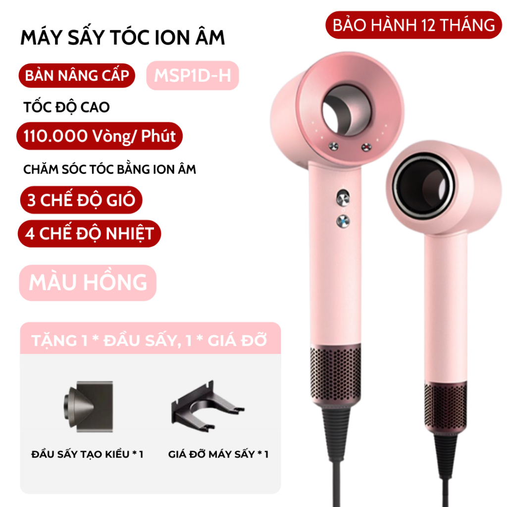 Máy Sấy Tóc Ion Âm 2 Chiều Nóng Lạnh Chăm Sóc Tóc Tốc Độ, Có 3 Chế Độ Sấy, Tặng Kèm Đầu Sấy Tạo Kiểu