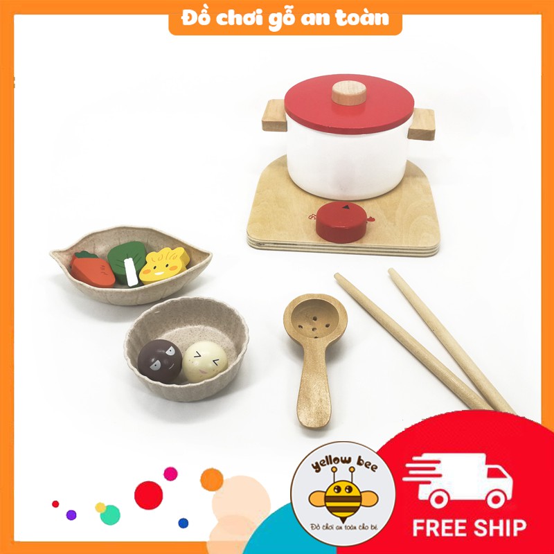 Đồ chơi nhà bếp trẻ em bằng gỗ, mô phỏng đồ dùng nhà bếp nấu ăn