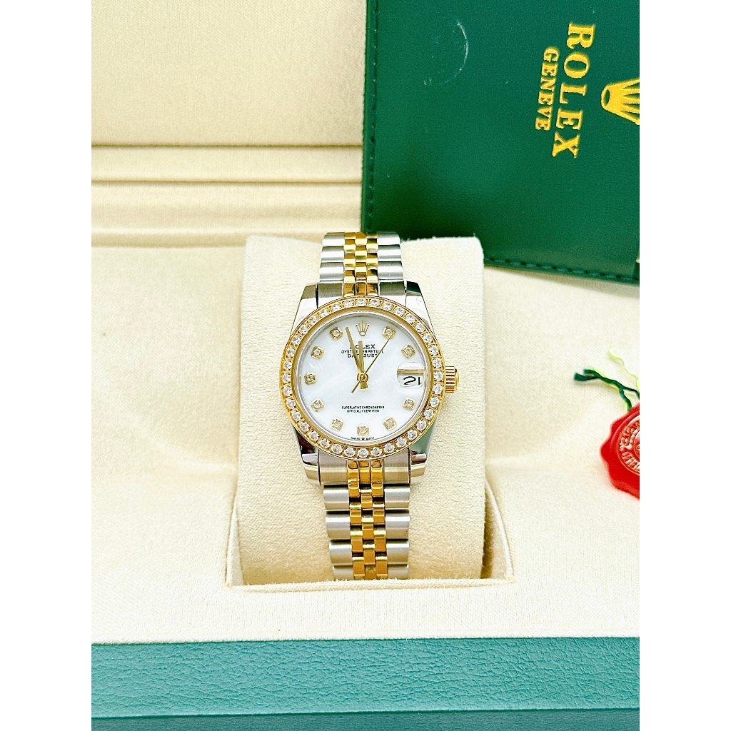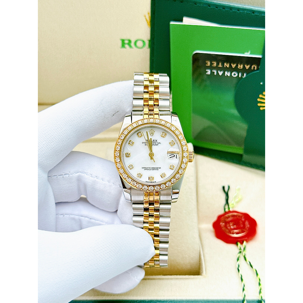 Đồng hồ ROLEX nữ, đồng hồ đeo tay nữ authentic full box cao cấp, mặt trắng viền xoàn, máy cơ tự động auto