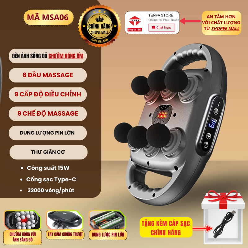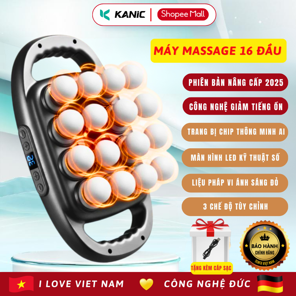 Máy Massage Cầm Tay METIS 16 Đầu, 9 Chế Độ 9 Cấp Độ Thư Giãn Toàn Thân Đa Năng, Giảm Đau Mỏi