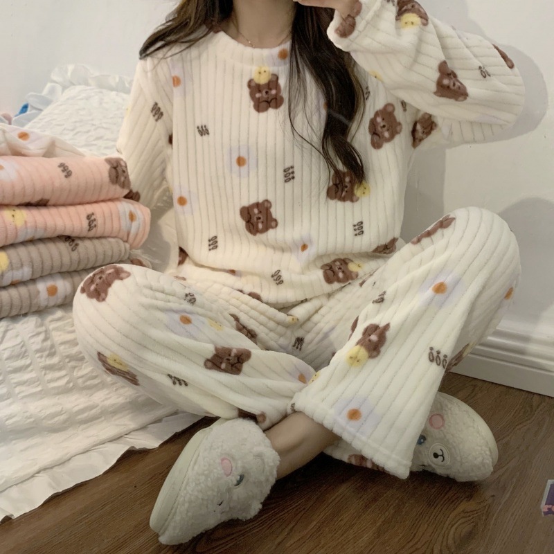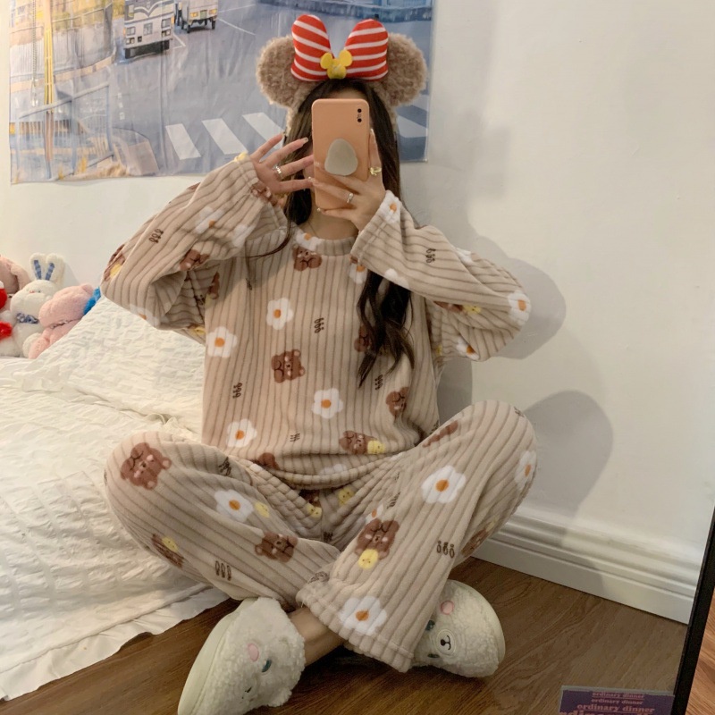 [ FREESHIP ĐỔI TRẢ] Đồ bộ ngủ nữ dễ thương, pijama, quần áo mặc nhà dài tay nỉ bông nhung lông giữ nhiệt thu đông QA13