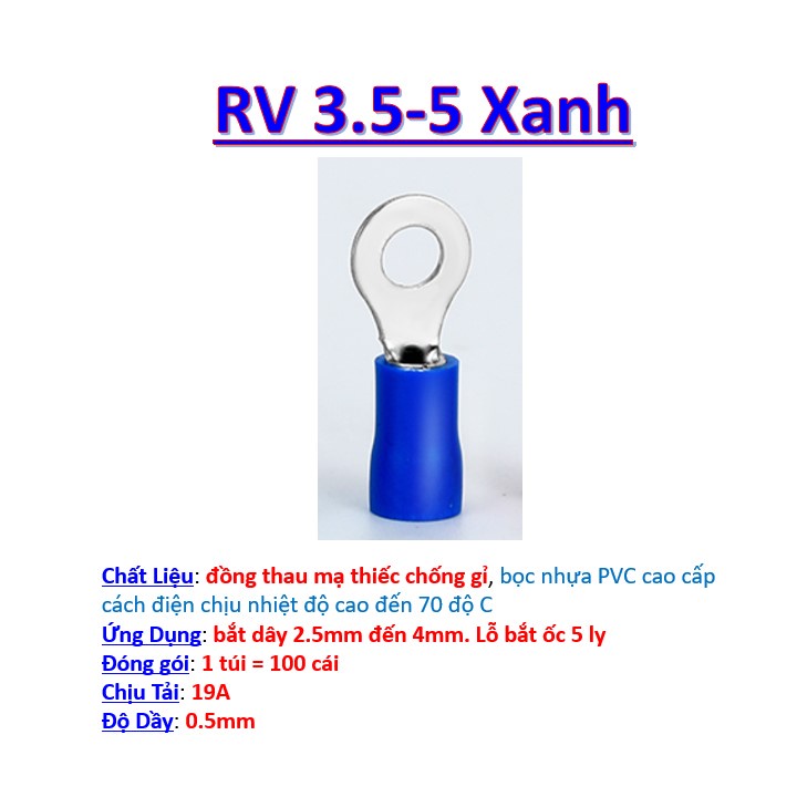 Đầu cos tròn bằng đồng, đầu cốt bấm dây điện 2.5 - 4 - 6mm, cosse (cót) đấu ắc quy xe đạp điện, xe máy RV 3.5 RV 5.5