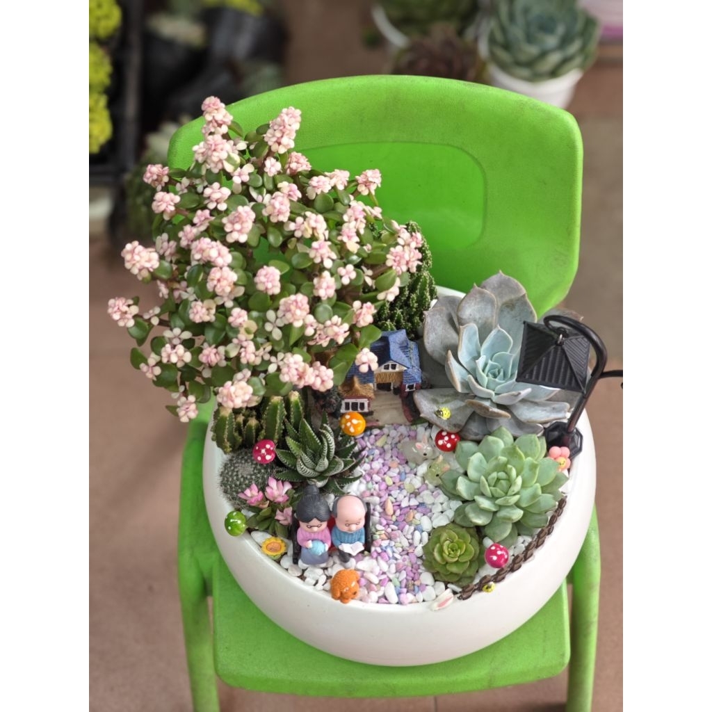 HOẢ TỐC Chậu sen đá đô la trang trí tiểu cảnh thích hợp làm quà tặng đường kính châụ 26cm