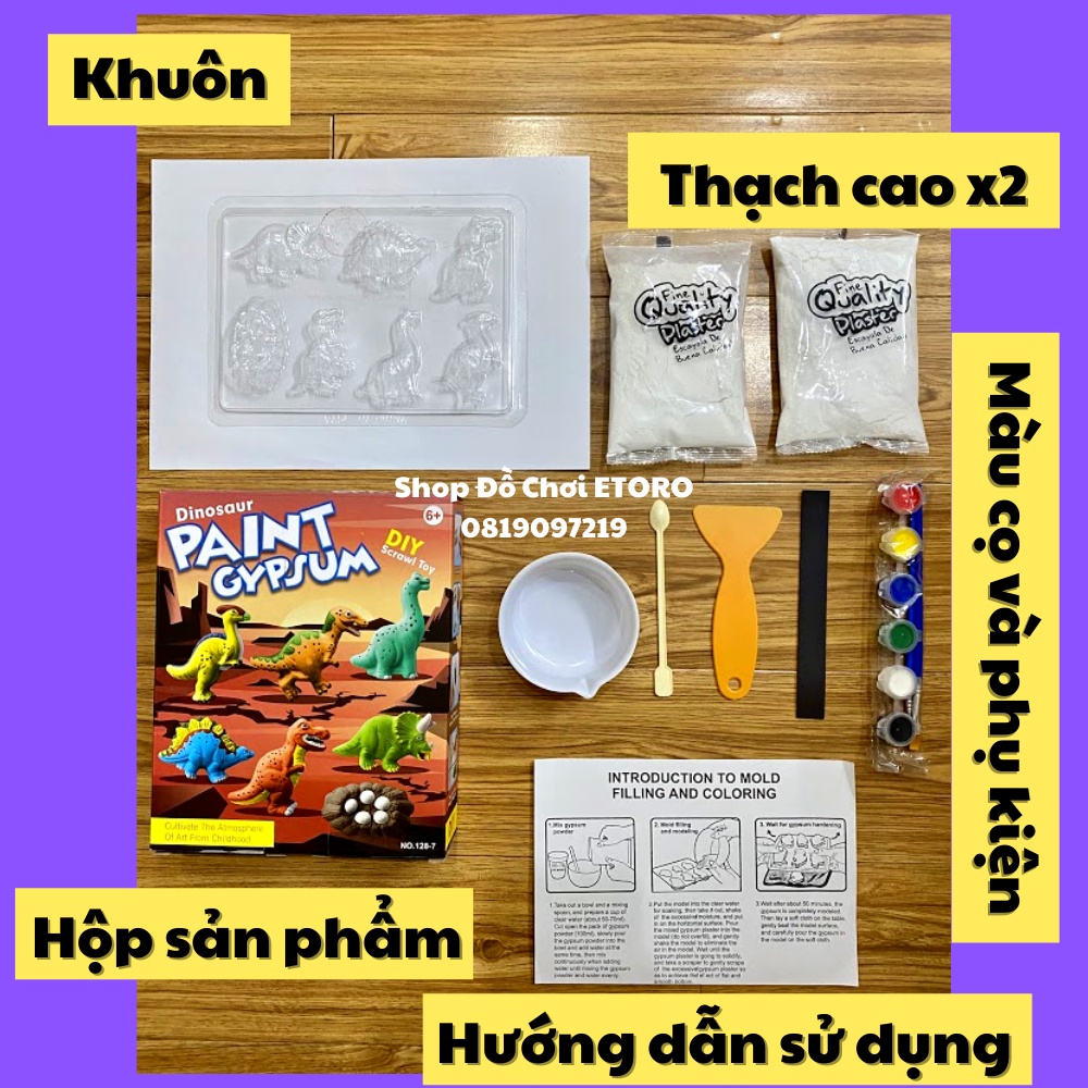 Bộ Đồ Chơi Tô Tượng Thạch Cao Tự Làm DIY Kèm Sẵn Màu Nước Cọ Vẽ Nhiều Chủ Đề Công Chúa, Kem, Xe Đua, Khủng Long, Xe Oto