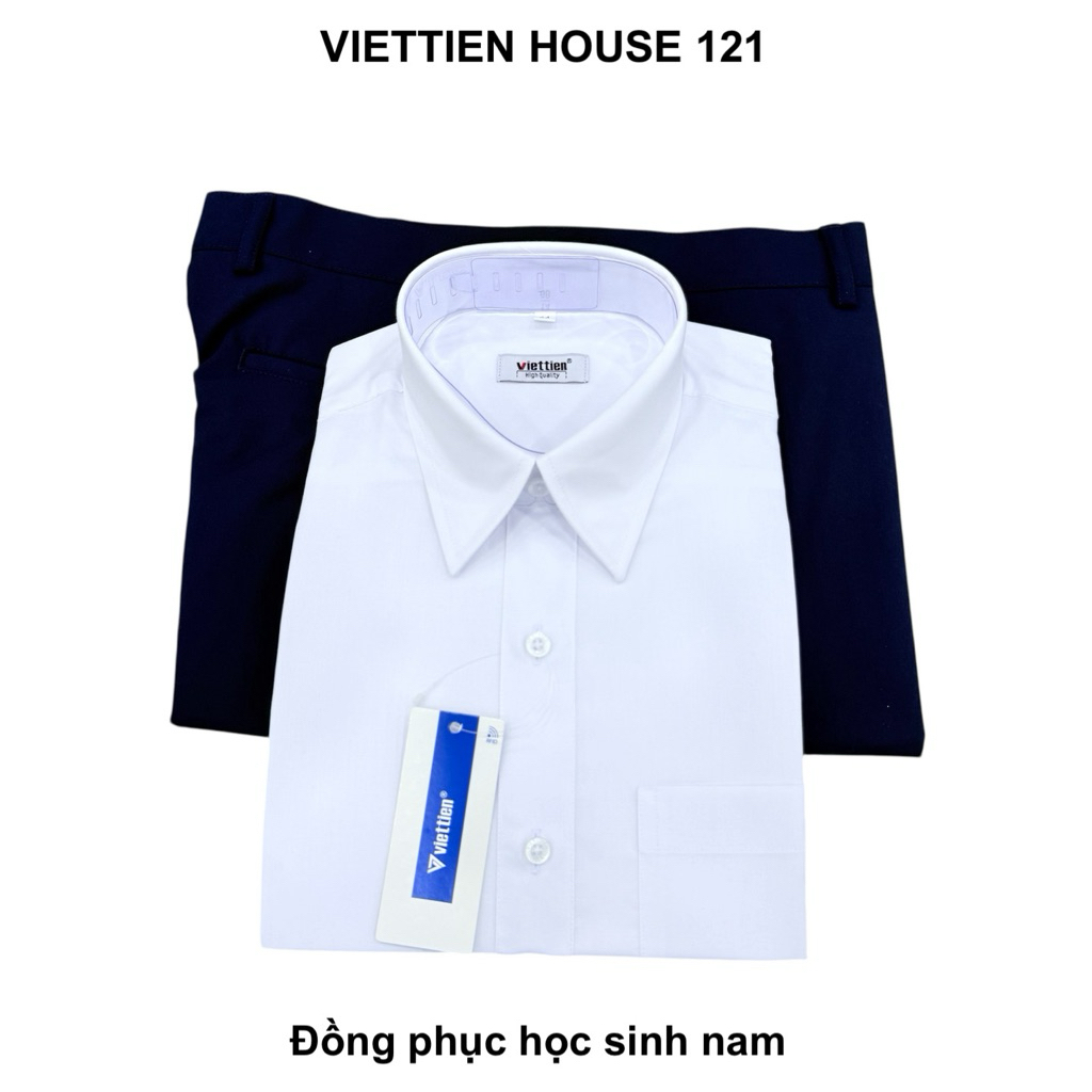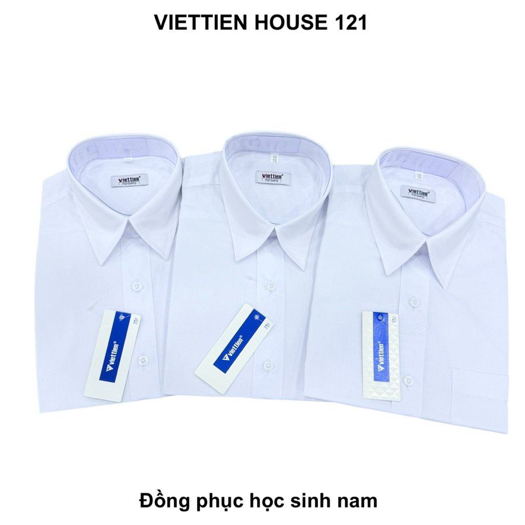 Việt Tiến đồng phục áo sơ mi học sinh nam vải cotton mịn mát thoải mái cho bé