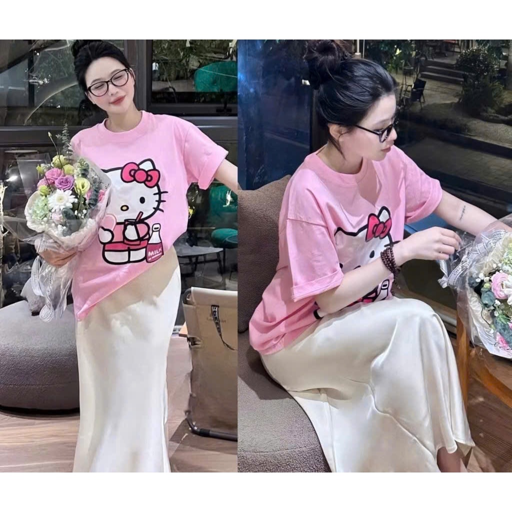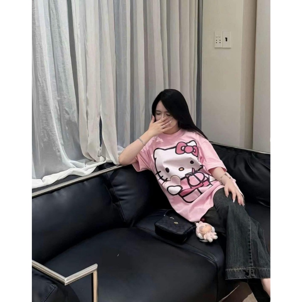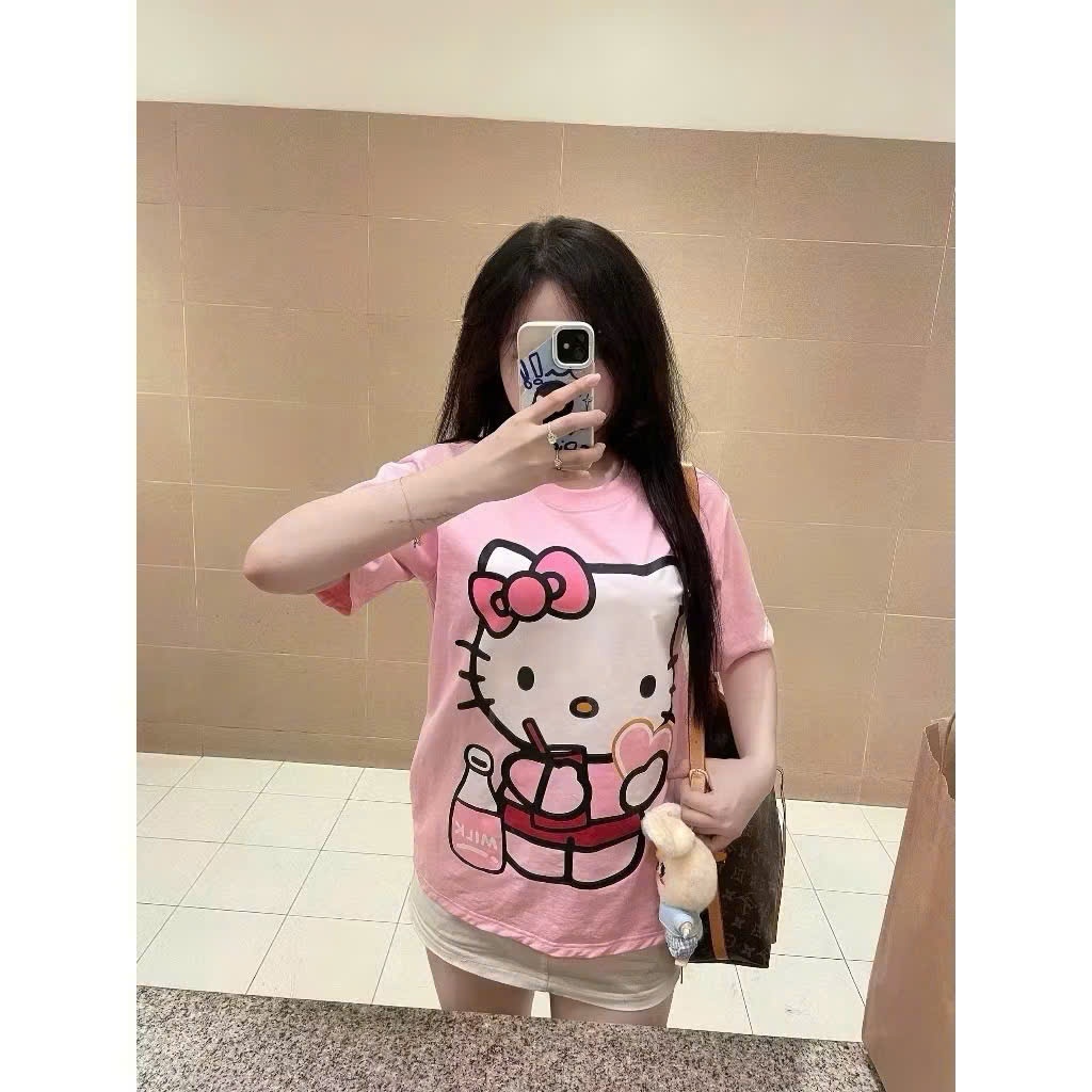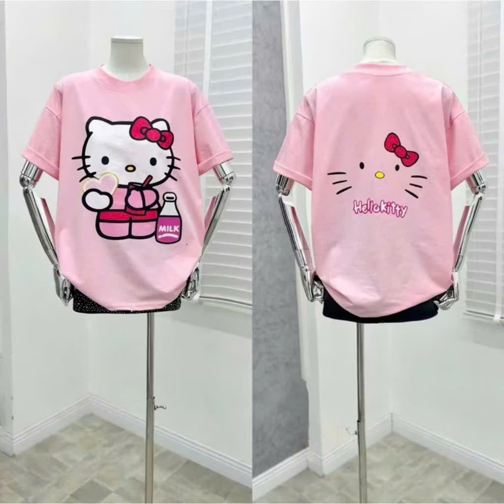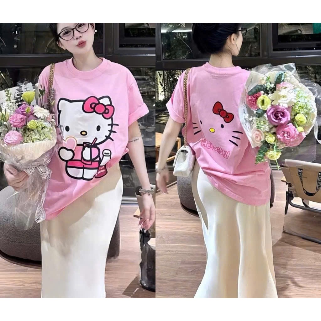 Áo thun nữ dáng rộng màu hồng hello kitty siêu xinh