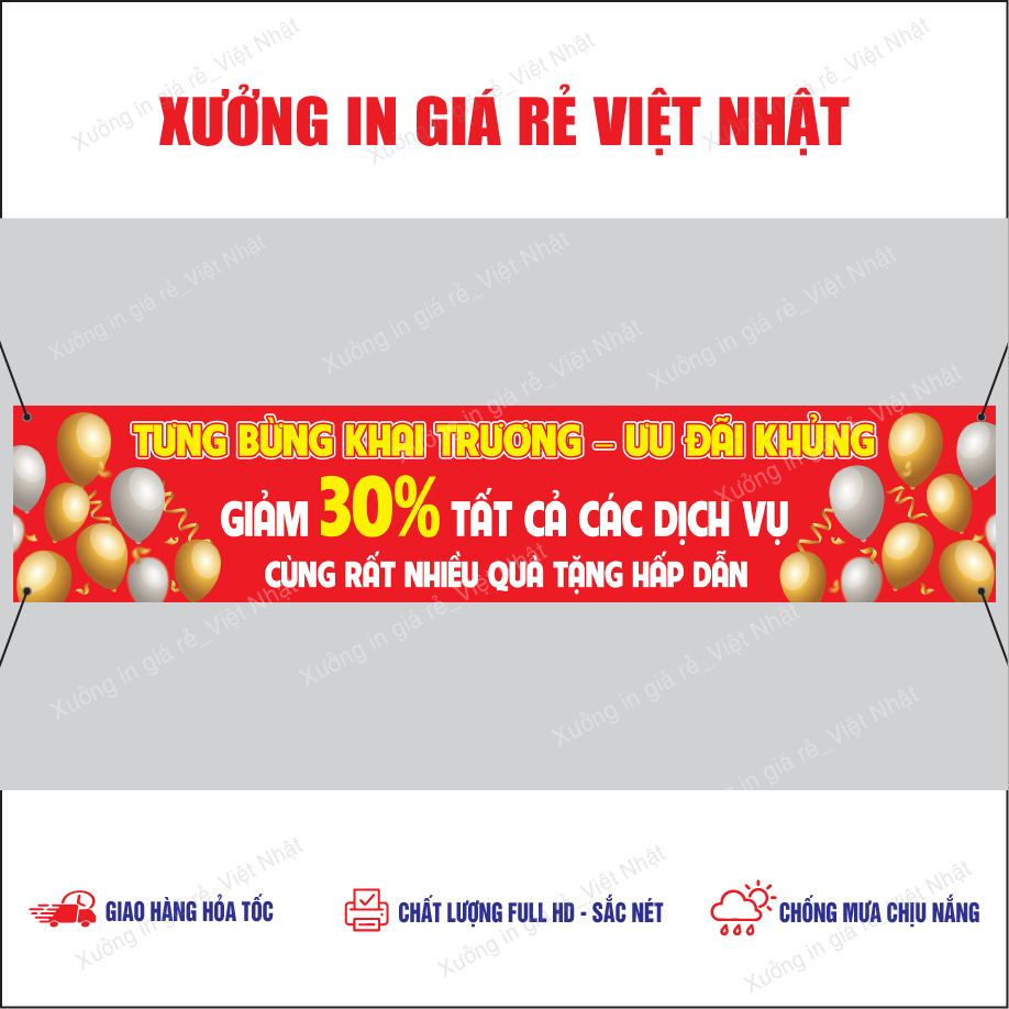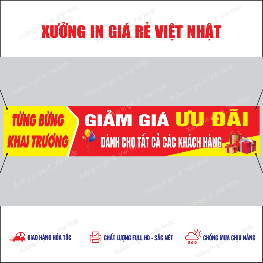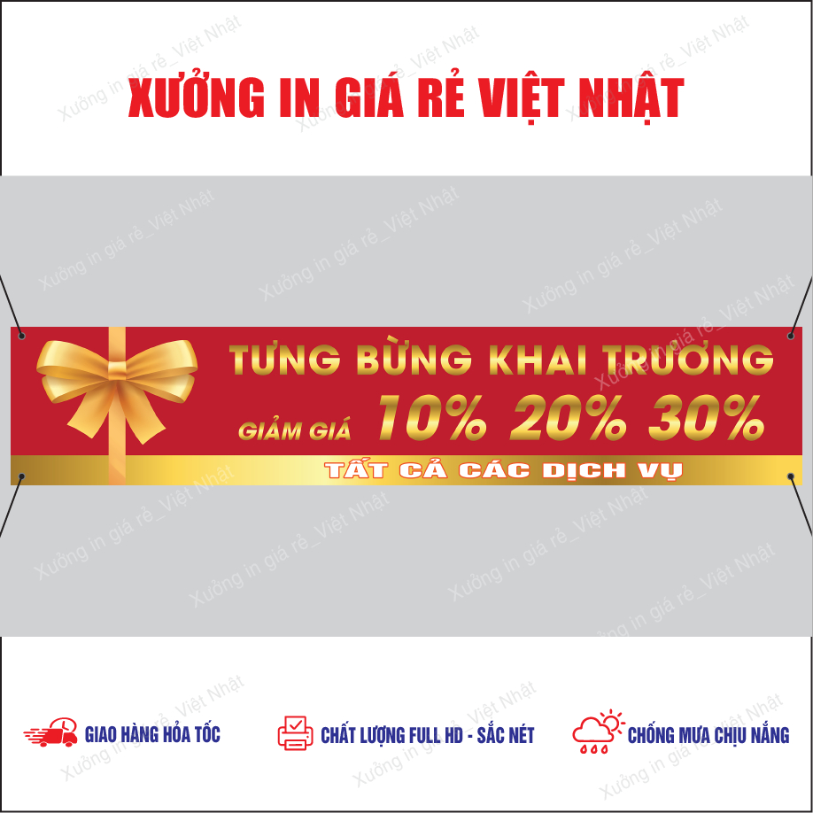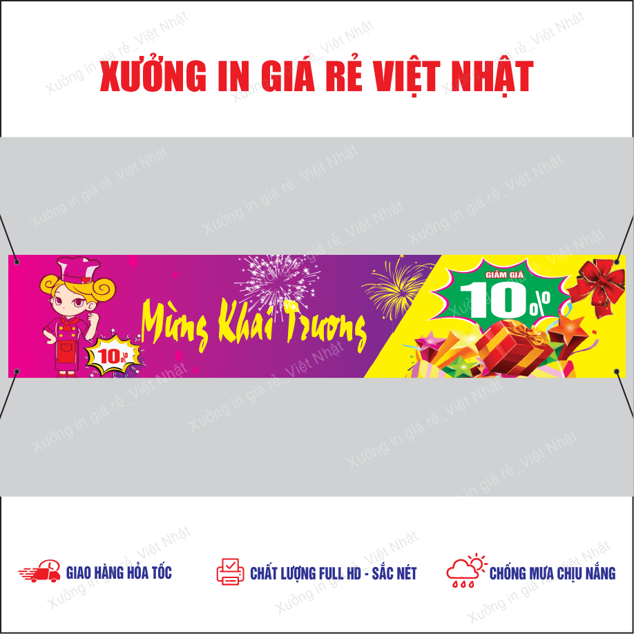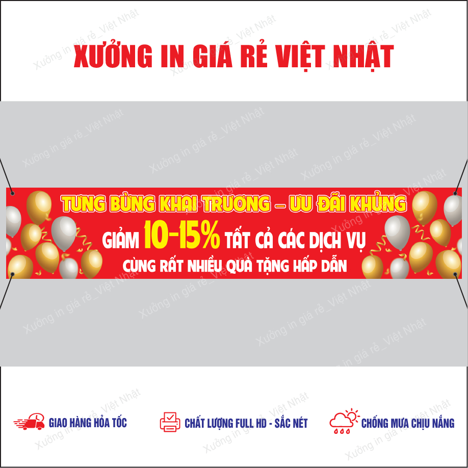 Băng rôn treo Khai Trương in Theo yêu cầu, Kích thước, Tên, Nội dung tùy ý_In Lấy ngay
