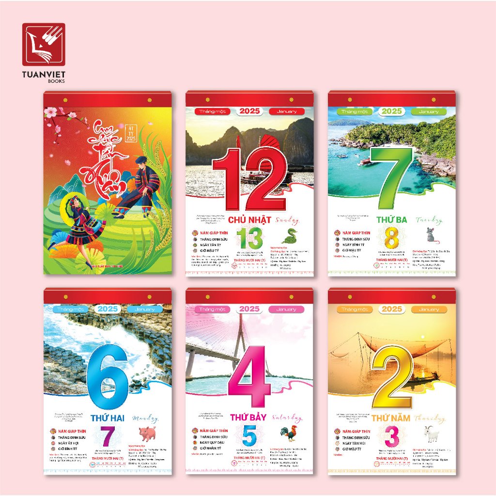 Lịch Bloc 2025 TUANVIET BOOKS - Kích thước (25x35cm, 20x30cm, 17x25cm, 10x15cm)