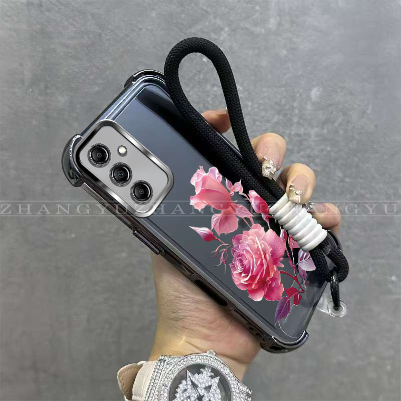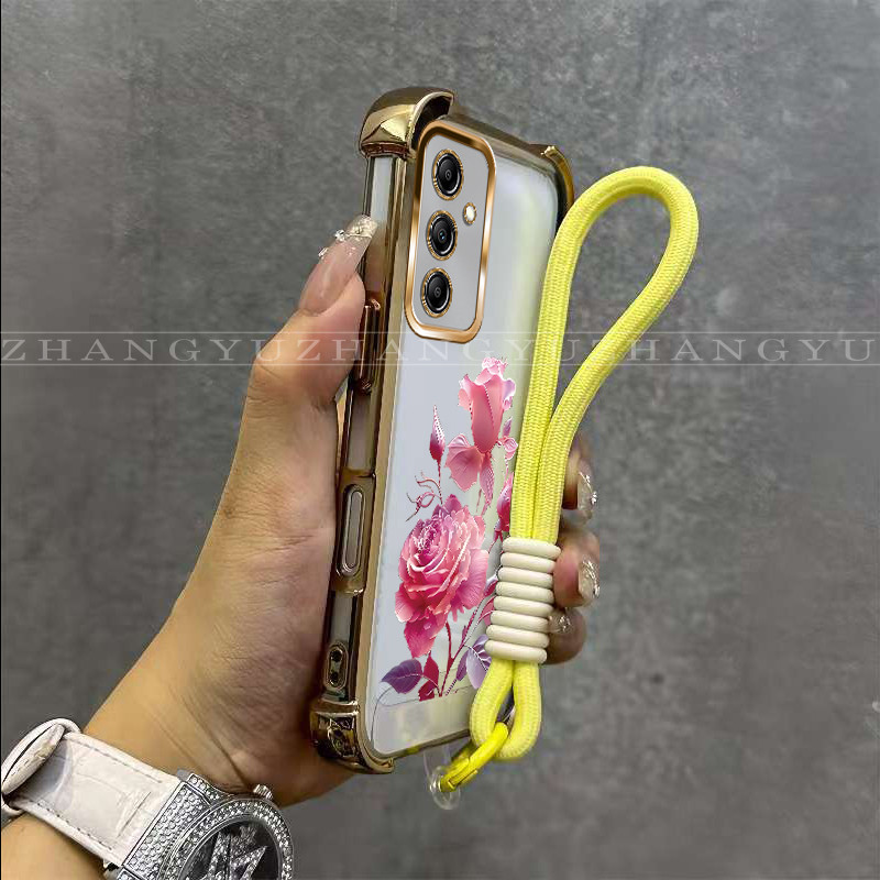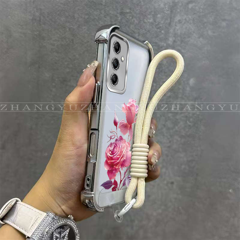 Thích hợp cho Ốp điện thoại Samsung A14 A24 A34 A54 5G 4G họa tiết hoa hồng mới vỏ mềm chống sốc rotective trường hợp dây buộc SZ44