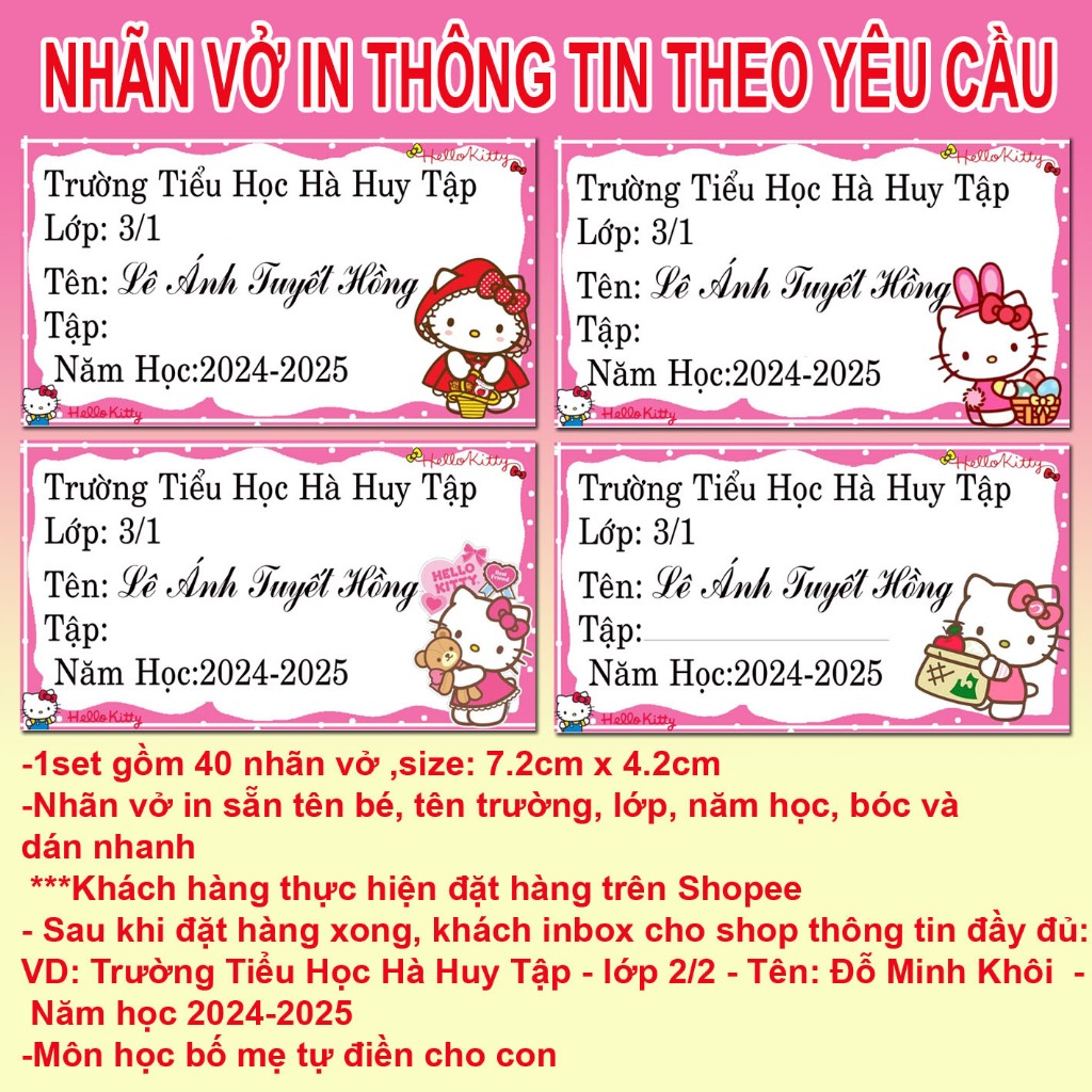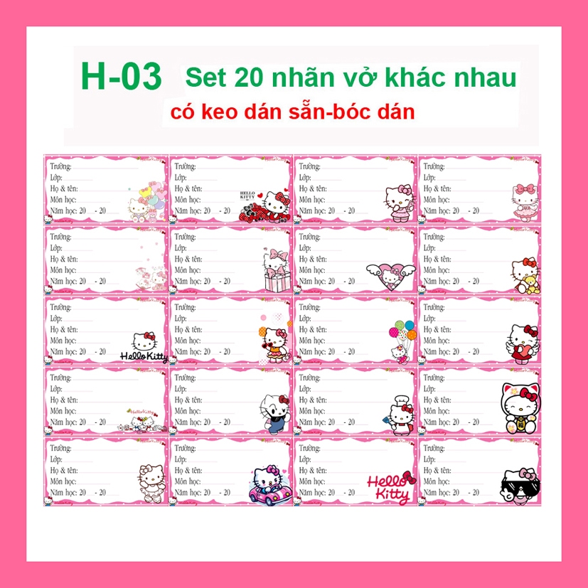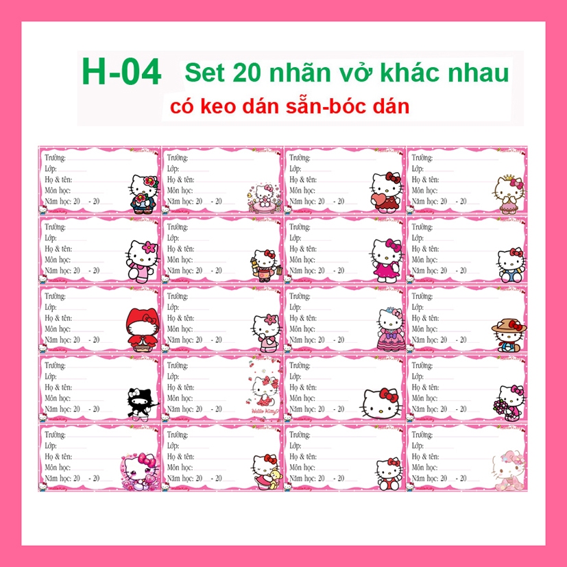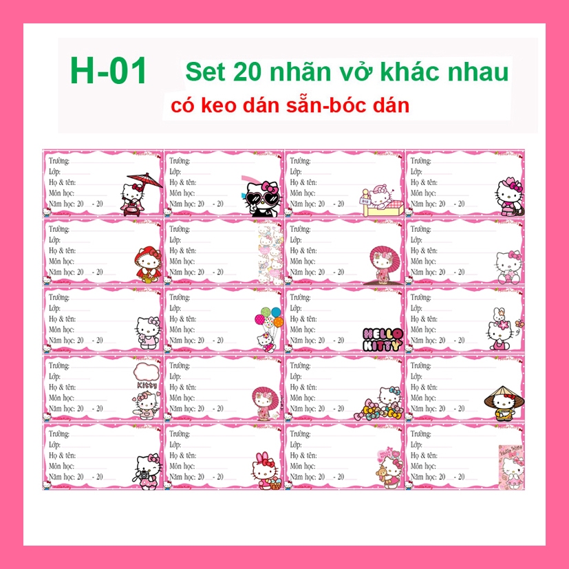 Nhãn vở Hello Kitty - nhãn dán Hello Kitty cute (combo 80 nhãn vở)
