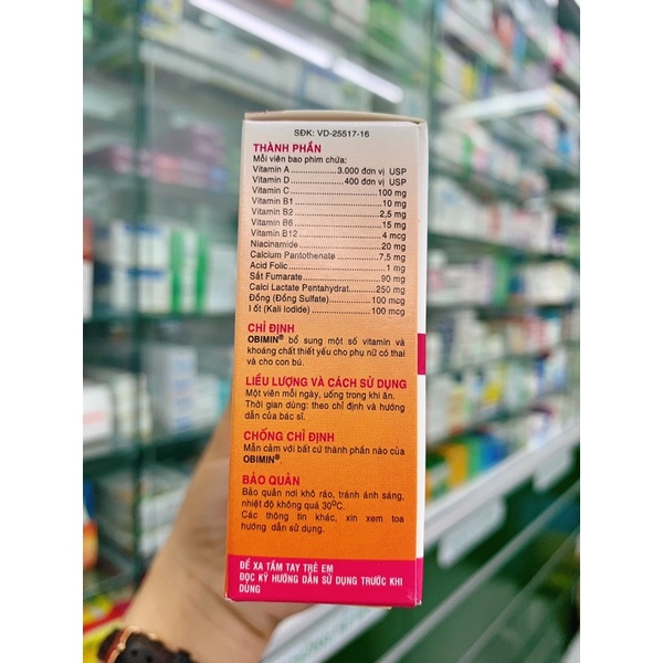 Viên uống OBIMIN bổ sung sắt vitamin và khoáng chất - Hộp 30 viên