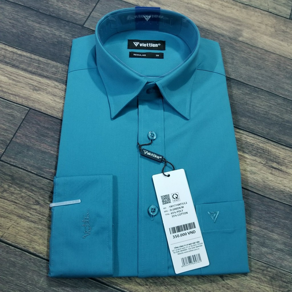 Aó sơ mi nam dài tay Việt Tiến màu XANH KÉT , chính hãng , cao cấp – form suông REGULAR- tà bầu