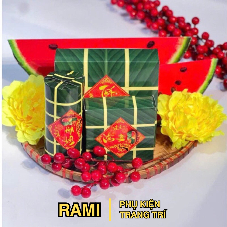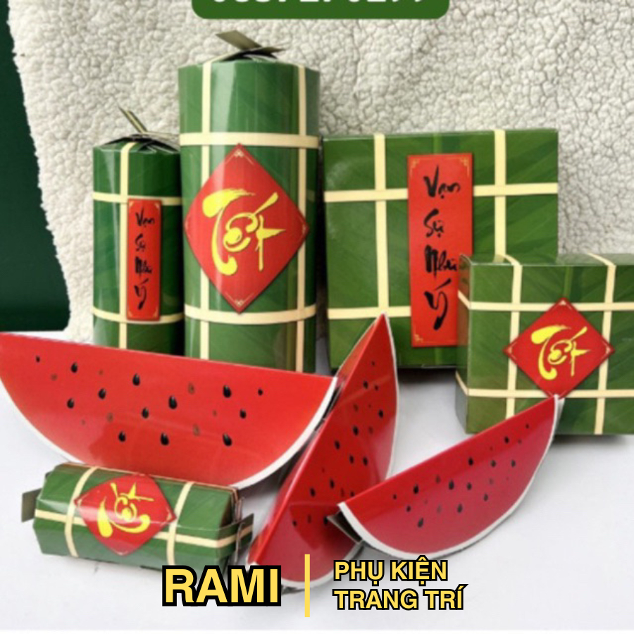 Mô hình Bánh Chưng, Bánh Tét, Dưa Hấu Giả handmade bằng giấy gấp độc đáo, trang trí Tết