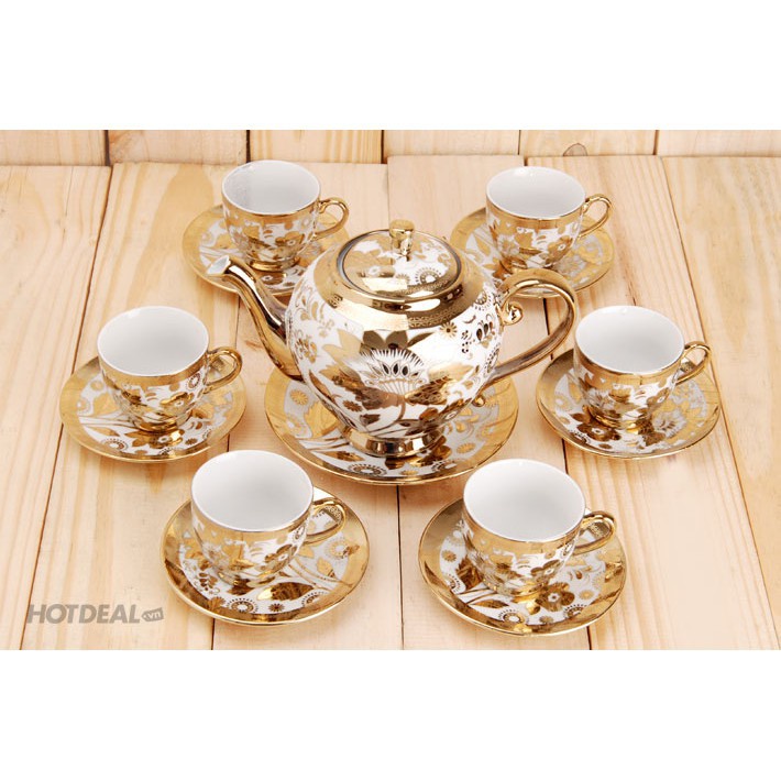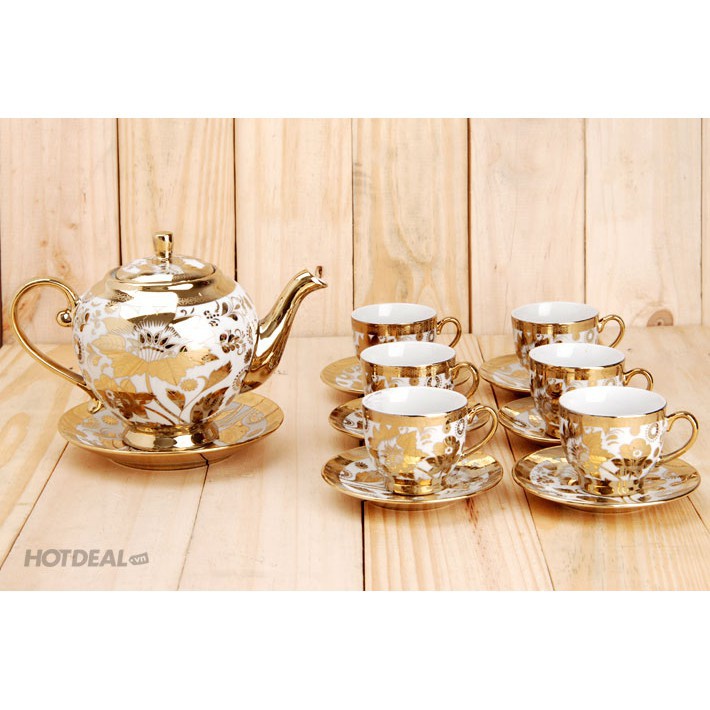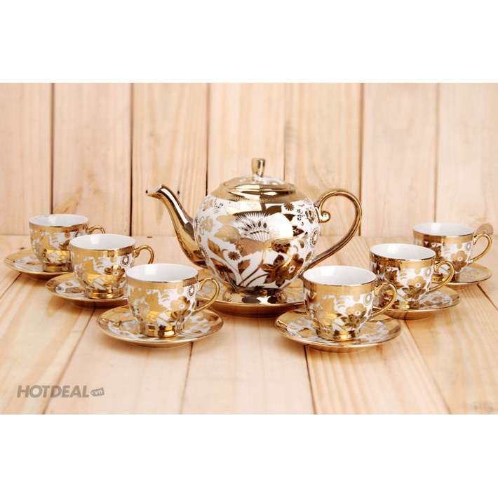 [ẢNH THẬT] BỘ TÁCH TRÀ HOA VĂN NHŨ VÀNG HOÀNG GIA - BỘ ẤM CHÉN UỐNG TRÀ 6 LY CAO CẤP