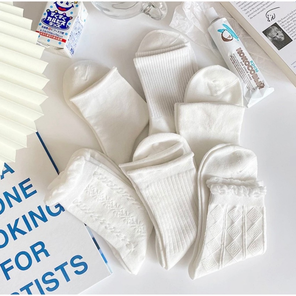 Set 5 Đôi Tất Cổ Cao Nữ Hàn Quốc Trắng
