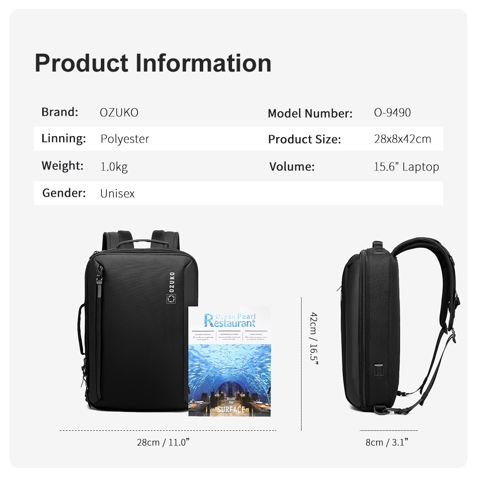 Ba lô đựng laptop OZUKO 15.6 inch chống thấm nước đa năng dành cho nam