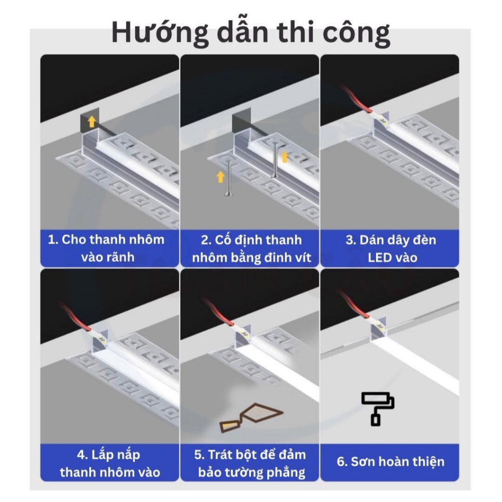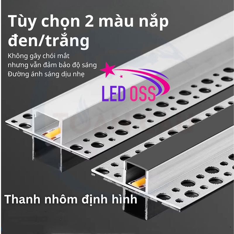 Combo 3 thanh nhôm âm trần thạch cao 1m 2m kết hợp đèn led dán lắp âm trần