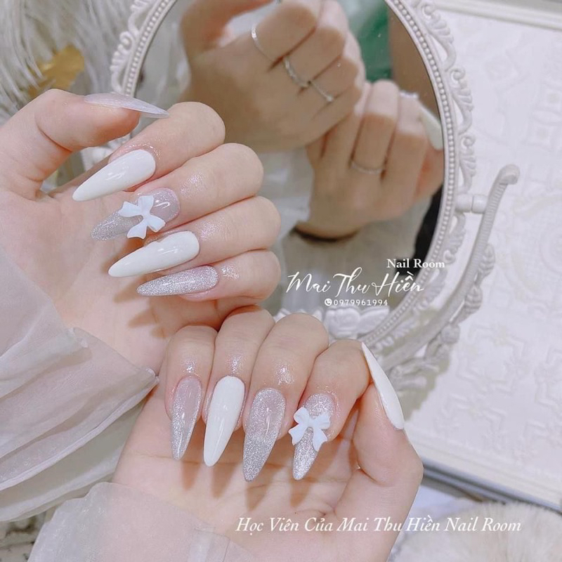 mẫu nail dài gắn nơ