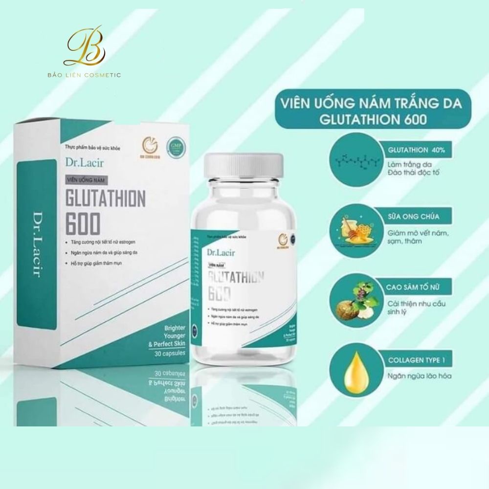 Viên uống trắng da Glutathione 600 Dr Lacir, viên uống đẹp da cân bằng nội tiết tố nữ