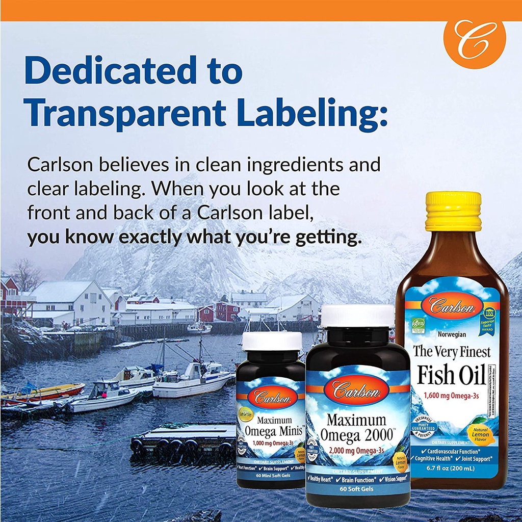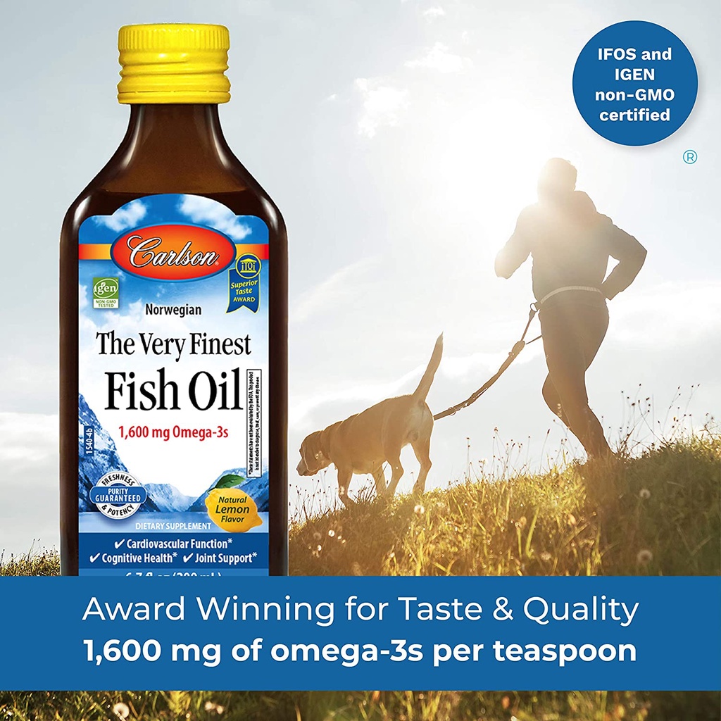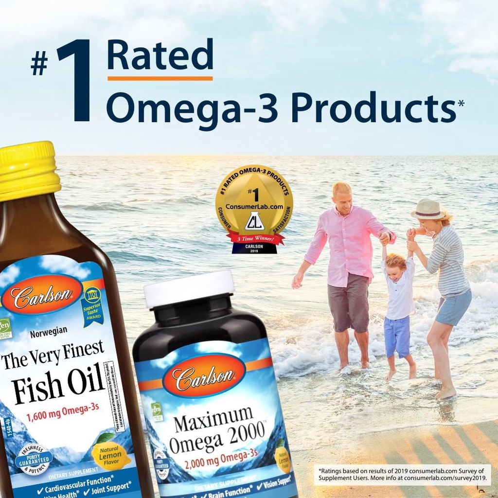 Carlson Labs The Very Finest Fish Oil Liquid 200ml - Dầu cá dạng nước 1600mg Omega 3 Chai thuỷ tinh