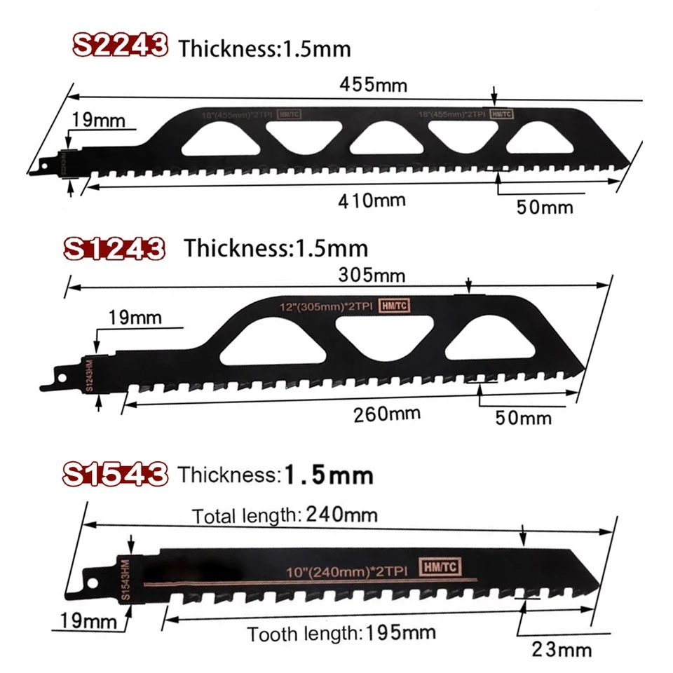 Lưỡi cưa kiếm cắt tường, bê tông nhẹ 305mm - 455mm