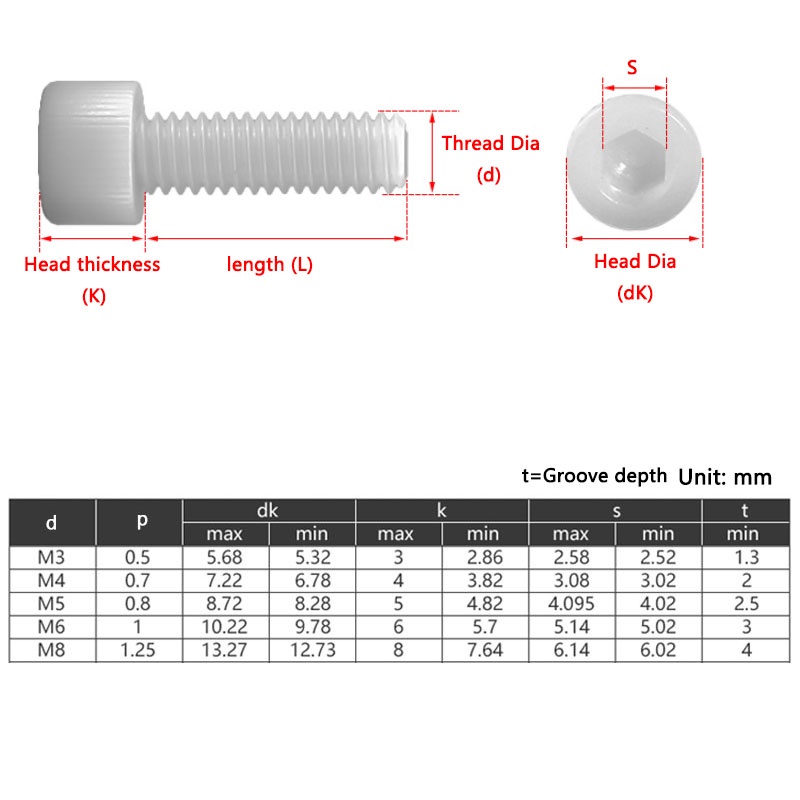 Bộ Bu Lông Đầu Lục Giác M3 M4 M5 M6 M8 Bằng Nhựa Nylon Màu Trắng