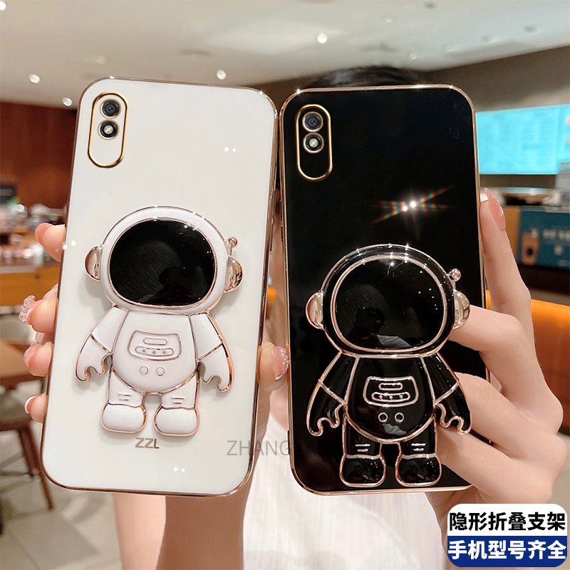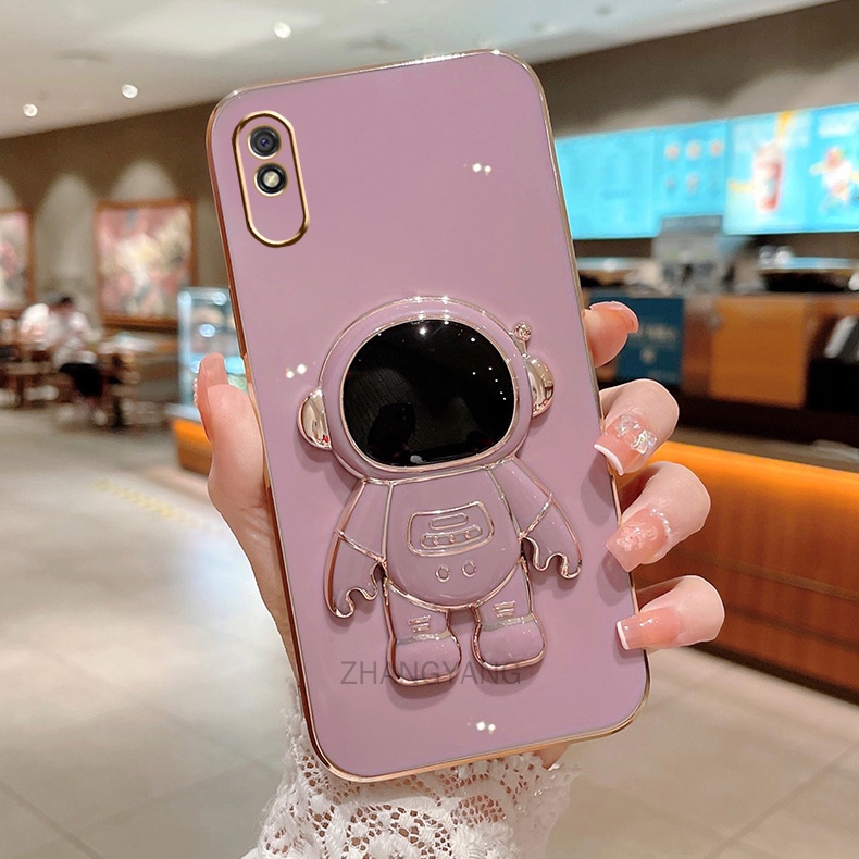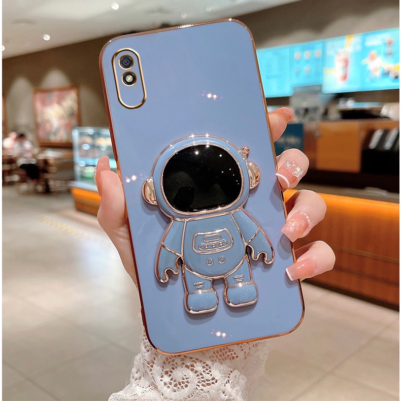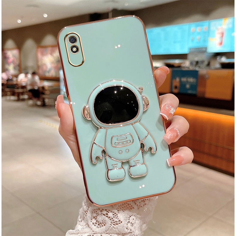 ốp lưng Redmi 9a TPU Mạ điện 3D Phi hành gia có chân đế ốp điện thoại Redmi 9a