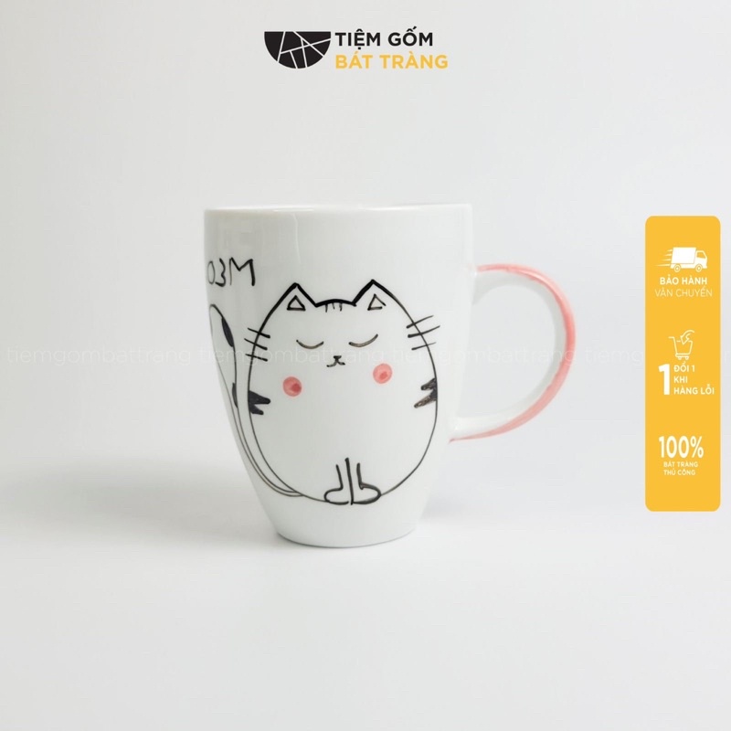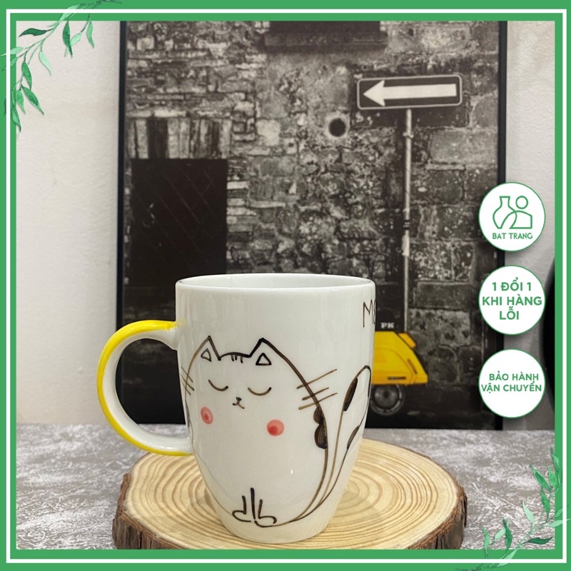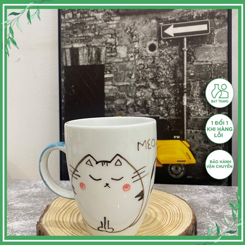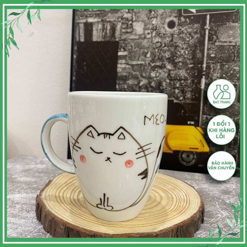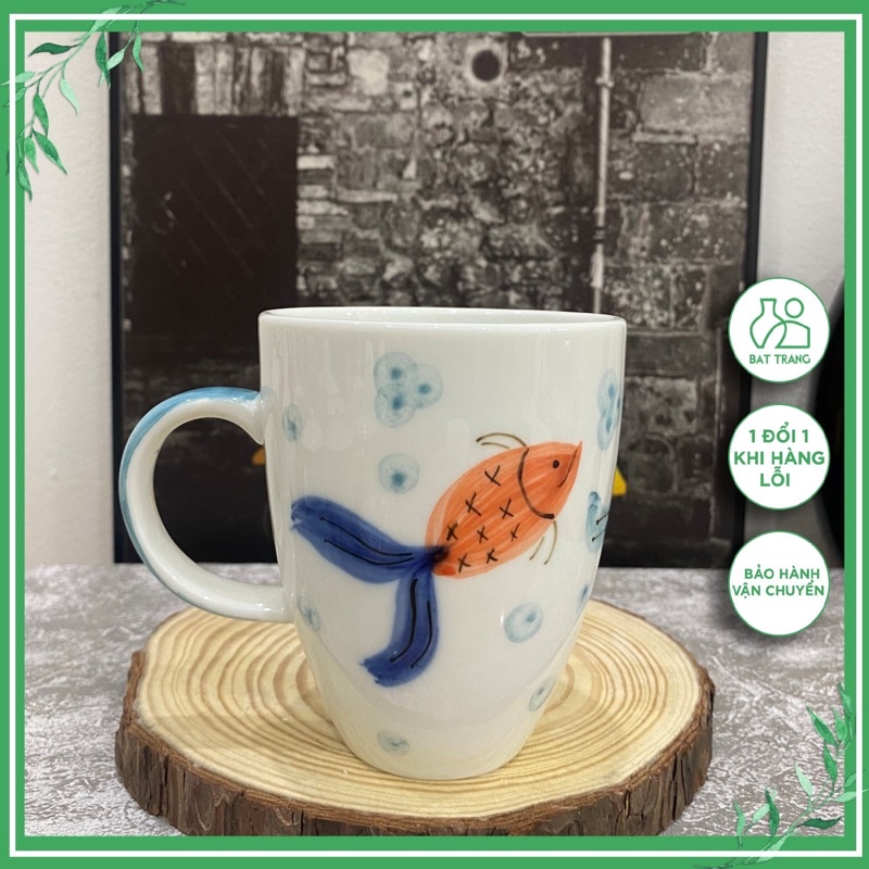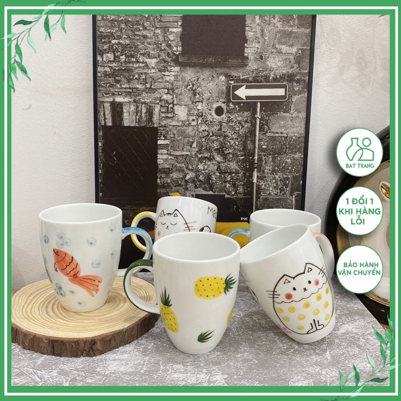 Cốc Sứ Uống Nước Cốc Nước Có Quai 280ML Pha Trà Cafe Hoạ Tiết Vẽ Tay Gốm Sứ Bát Tràng Cao Cấp