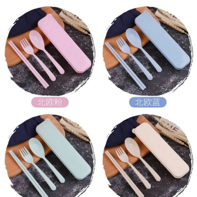 (Loại xịn có hộp) Bộ thìa, nĩa, đũa làm từ lúa mạch không hại sức khỏe