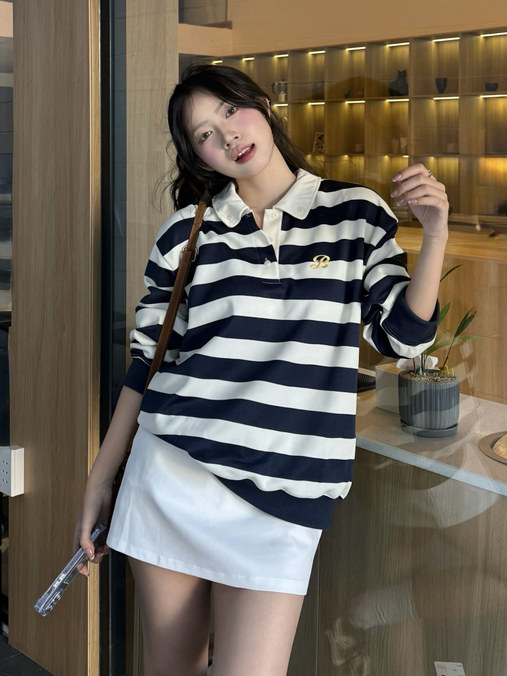 Áo Thun Dài Tay Polo Kẻ Ngang 𝑩𝒚𝒄𝒂𝒎𝒄𝒂𝒎 Sọc Lớn Hàn Quốc Thu Đông Logo Thêu Trendy APD309