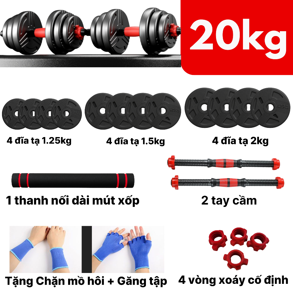 Tạ tay đa năng tập gym điều chỉnh 10kg 20kg 30kg 40kg tập cơ tay - vai - ngực- bắp kết hợp đòn đẩy tập tại nhà