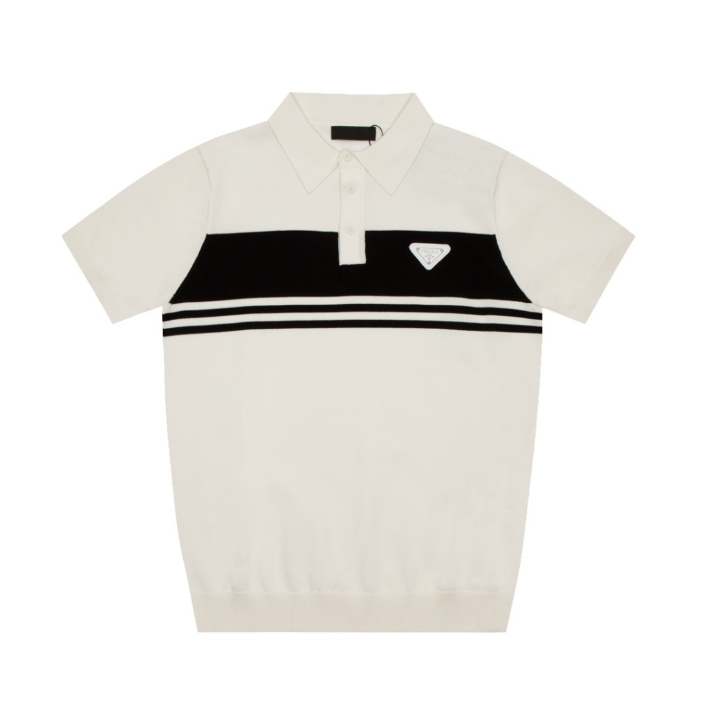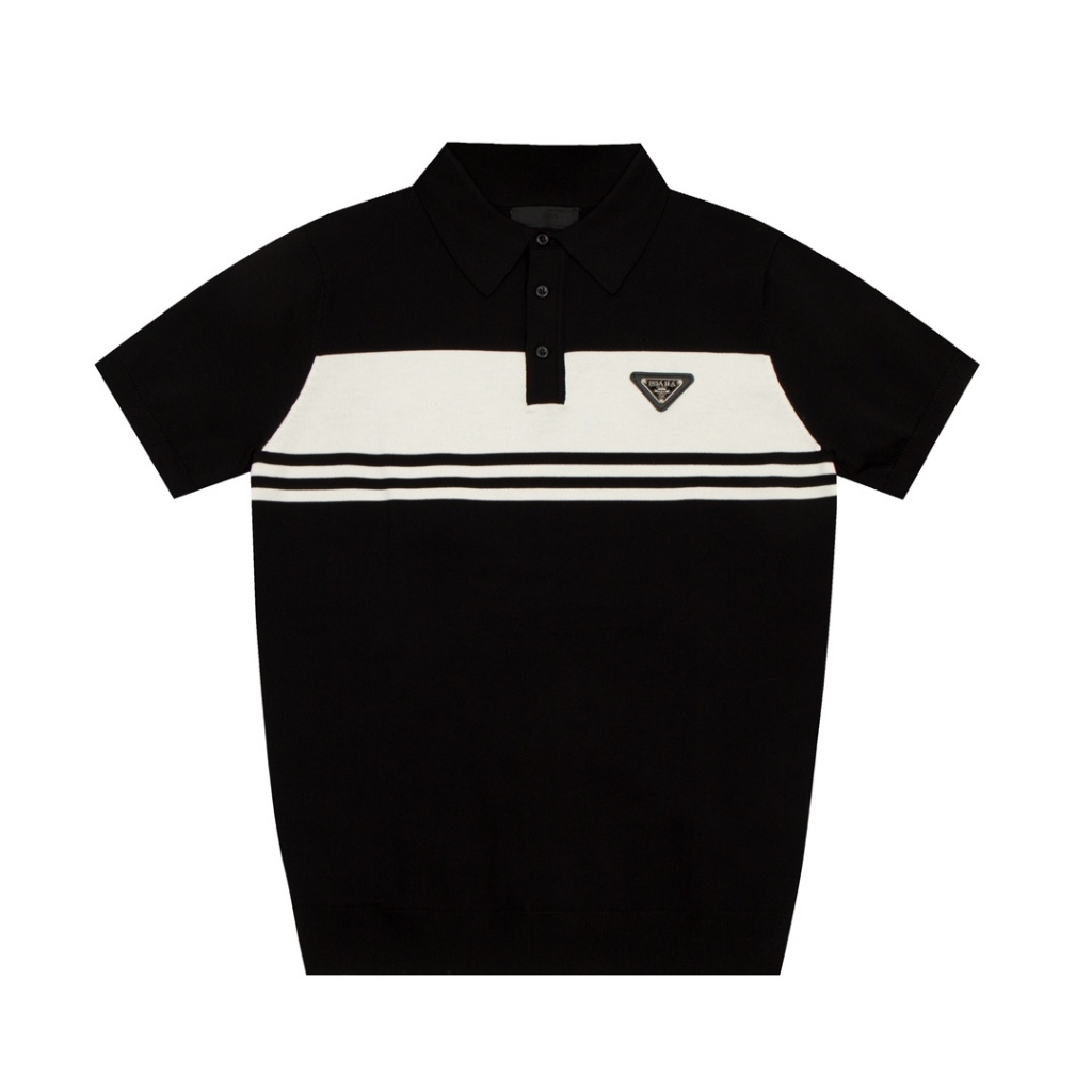 Mùa Xuân Mùa Hè Phong Cách Mới Dệt Kim Co Giãn Ve Áo Thun Nam Thời Trang Tương Phản Khâu Tam Giác Logo Siêu Nhẹ Thoáng Khí Dệt Kim Ngắn