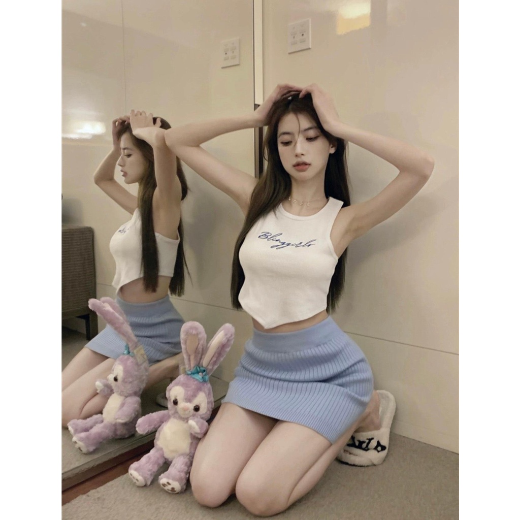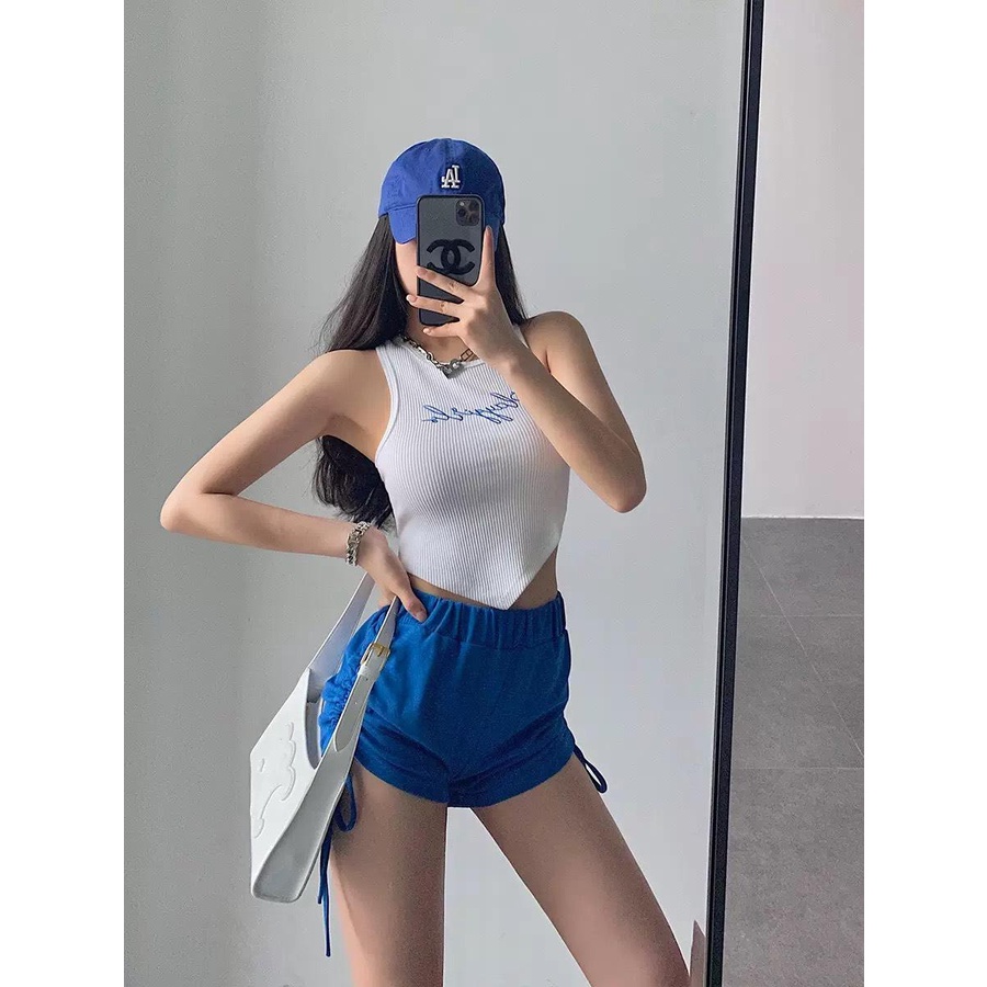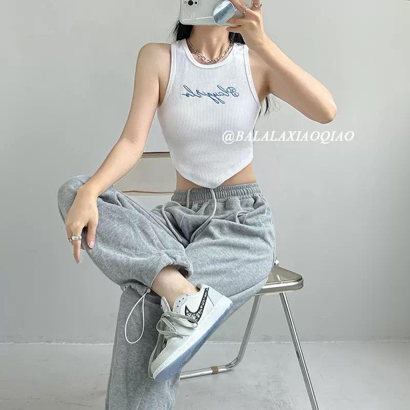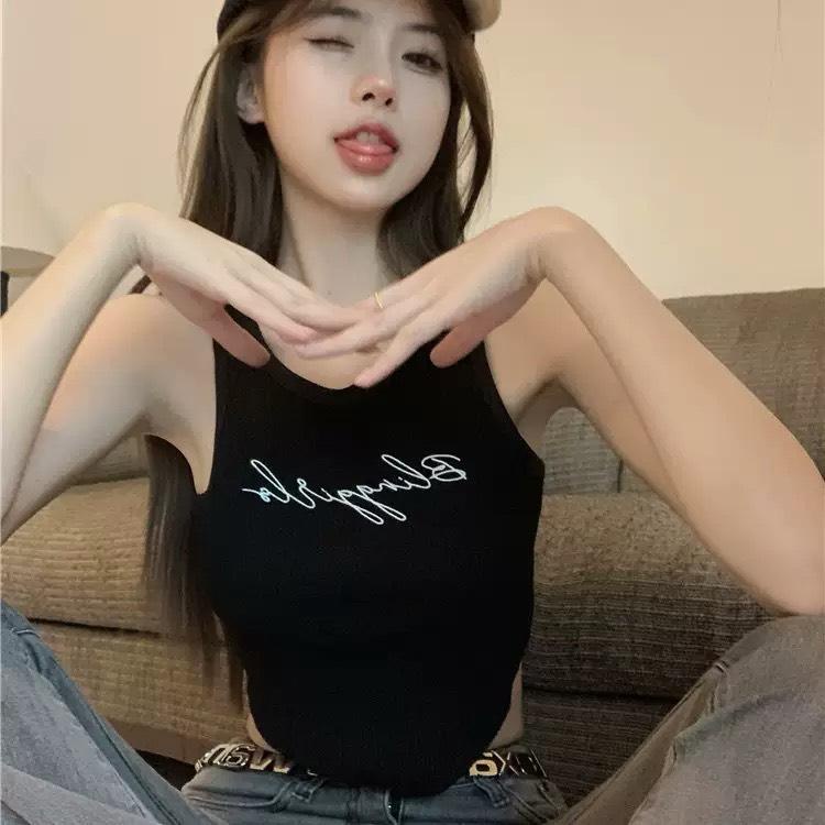 Áo Croptop Ba Lỗ , Dáng Ôm Body Vạt Nhọn In Chữ