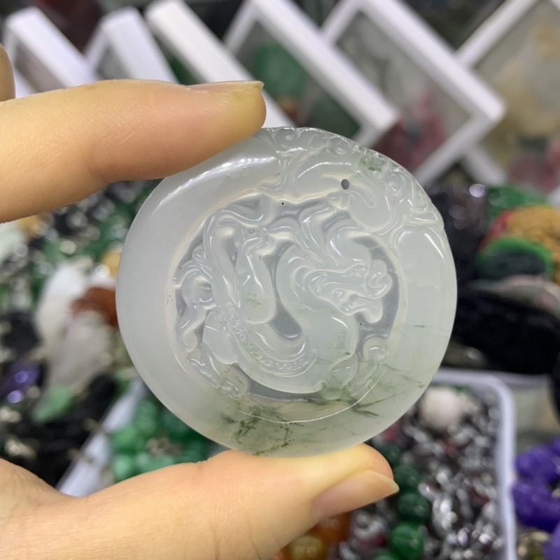 Mặt Dây Chuyền Hình Rồng Đá Ngọc Phỉ Thuý Có Tặng Kèm Dây Đeo