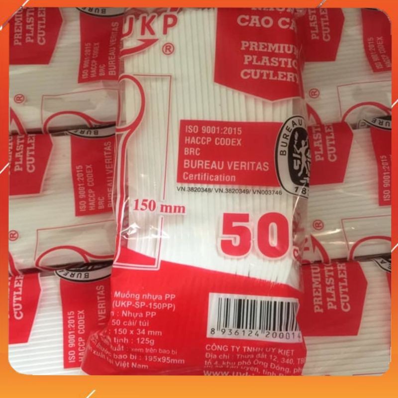 Thìa nhựa dùng 1 lần cứng trắng sứ 100 cái loại xịn đủ UKP