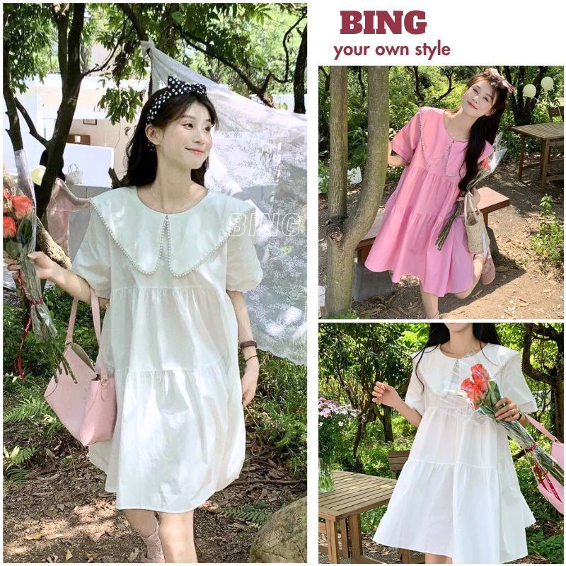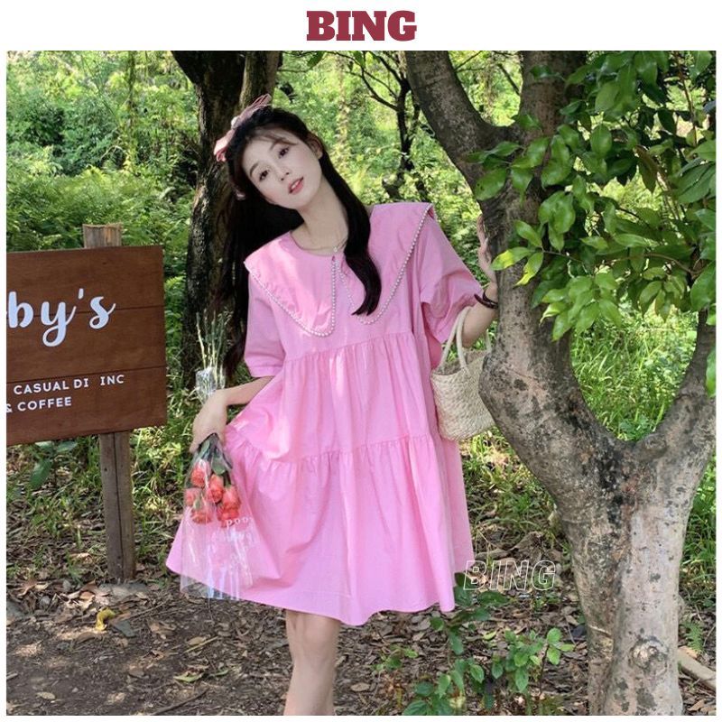 Váy babydoll nữ dáng xoè, Đầm công chúa tay ngắn thiết kế hai tầng phối ren nhẹ nhàng - BING