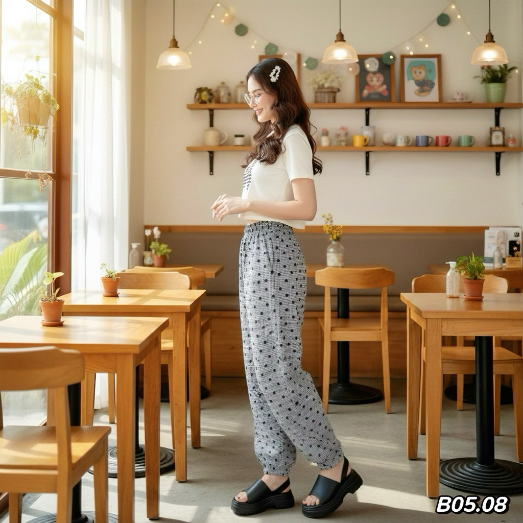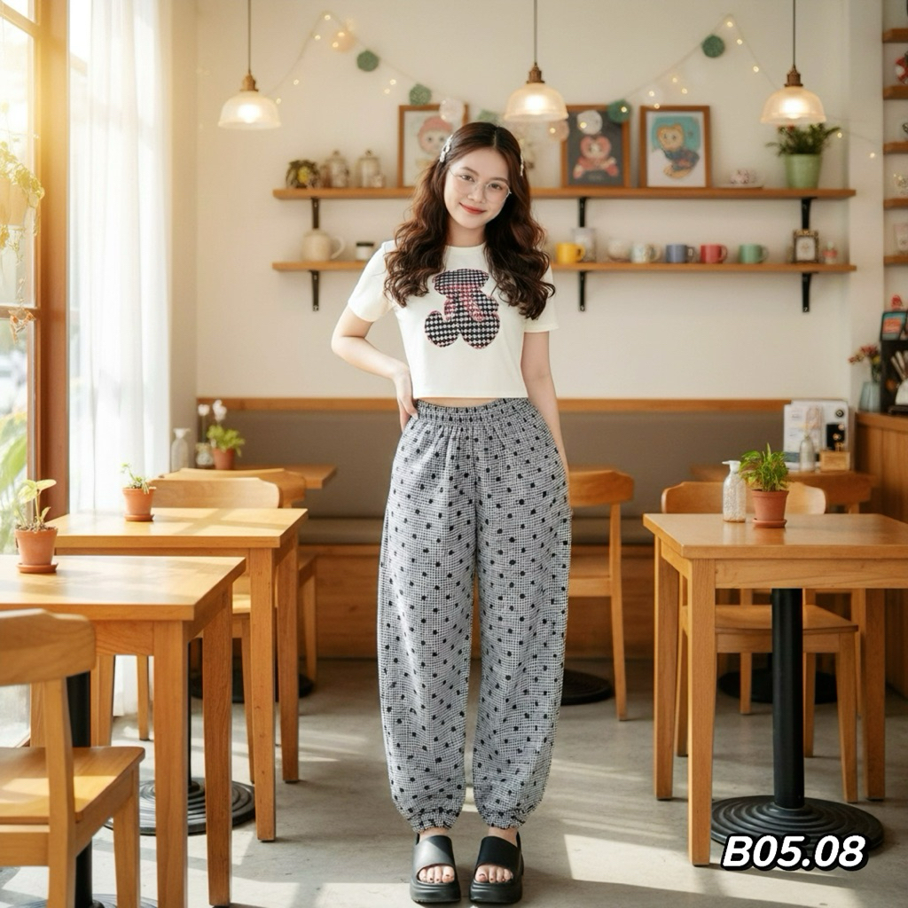 B05 - Sét bộ quần Biggi sọc caro in nơ áo thun tăm lạnh