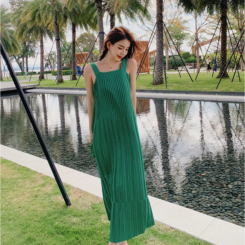 [Augustcloth] Đầm/ Váy đi biển xếp ly phong cách Hàn Quốc