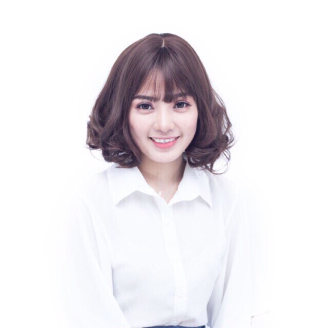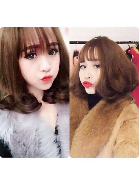 Tóc giả nguyên đầu ngắn xoăn -ảnh thật-tặng lưới chùm tóc