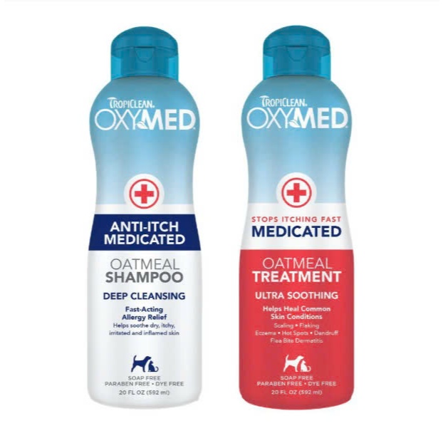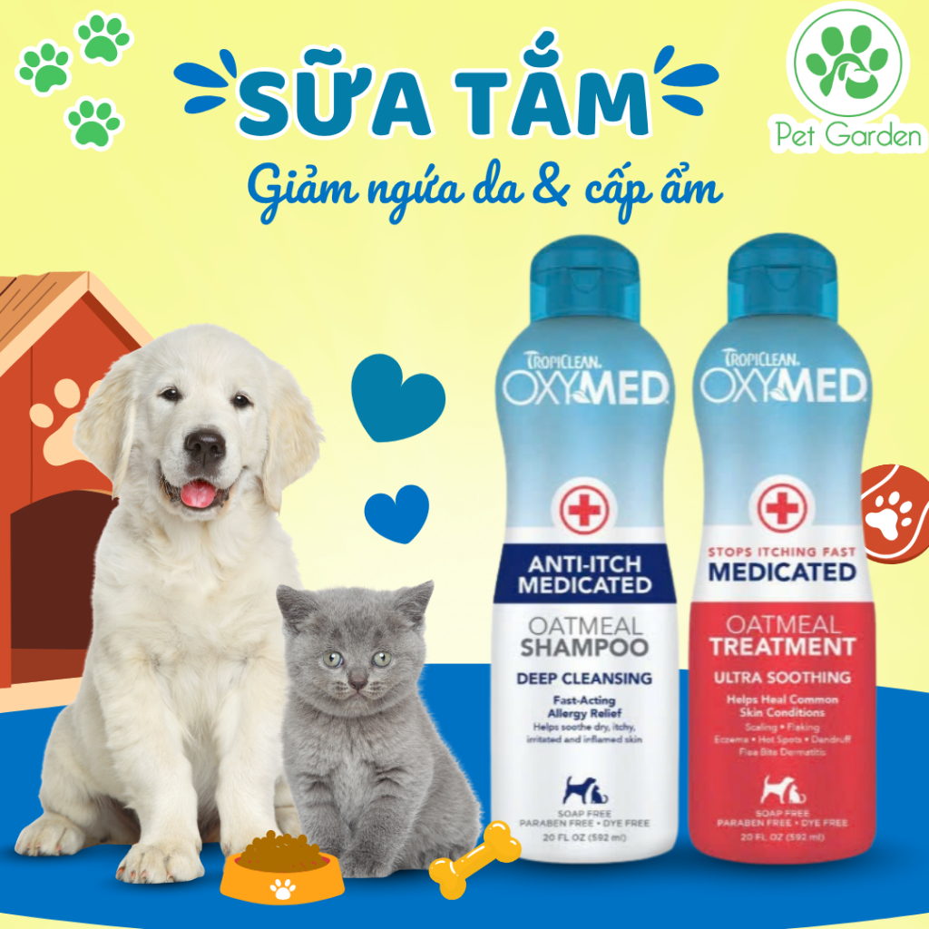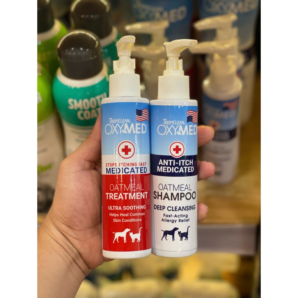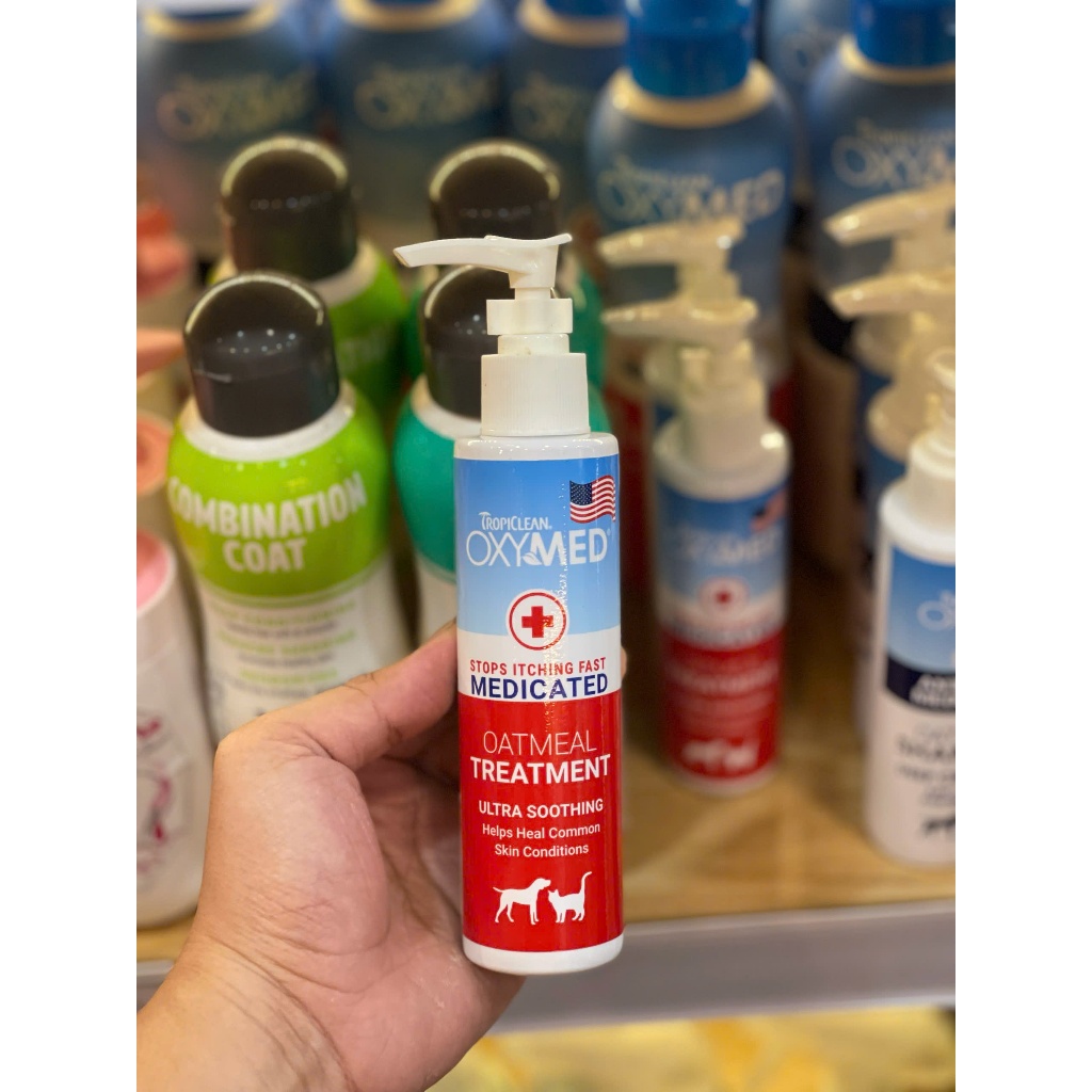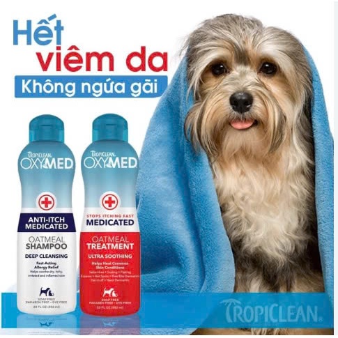 Sữa tắm gội xả chó mèo Tropiclean Oxymed Mỹ 592ml ngừa viêm da giảm ngứa cấp ẩm bóng lông