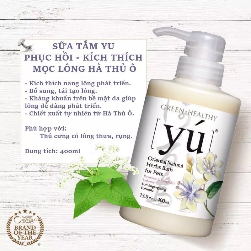 Sữa tắm chó mèo Yu Đài Loan 400ml giữ mùi thơm lâu, lông mềm mượt, khử mùi hôi cho thú cưng