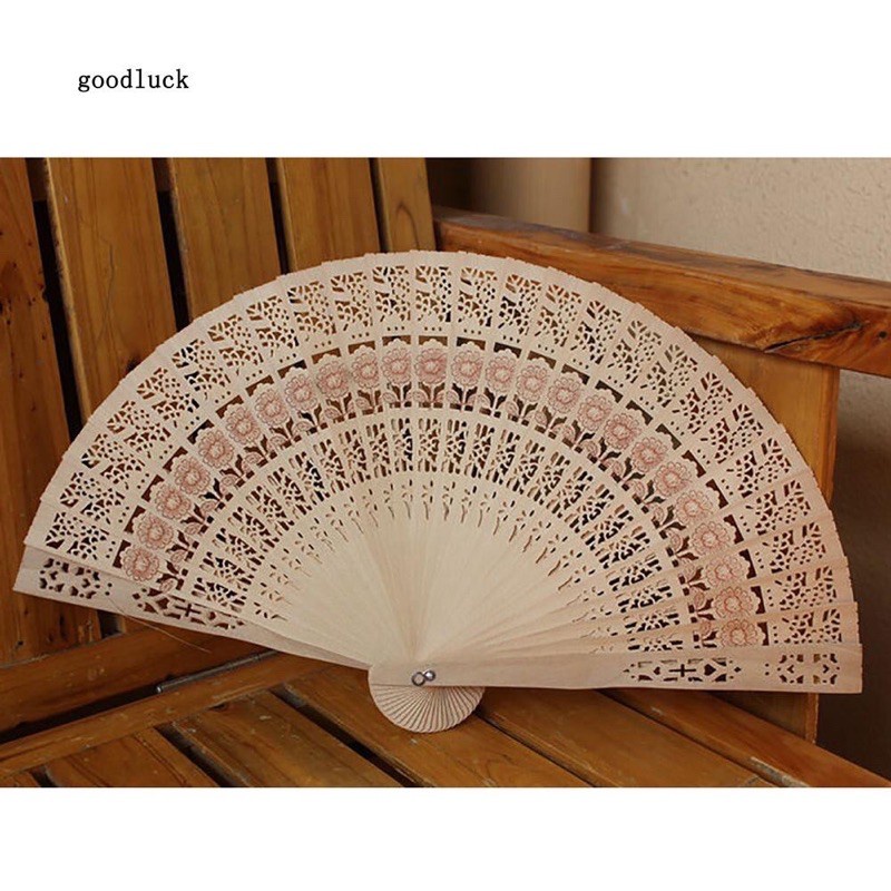 Quạt gỗ xếp làm oản tháp bánh, phụ kiện chụp ảnh trang trí phong cách cổ trang