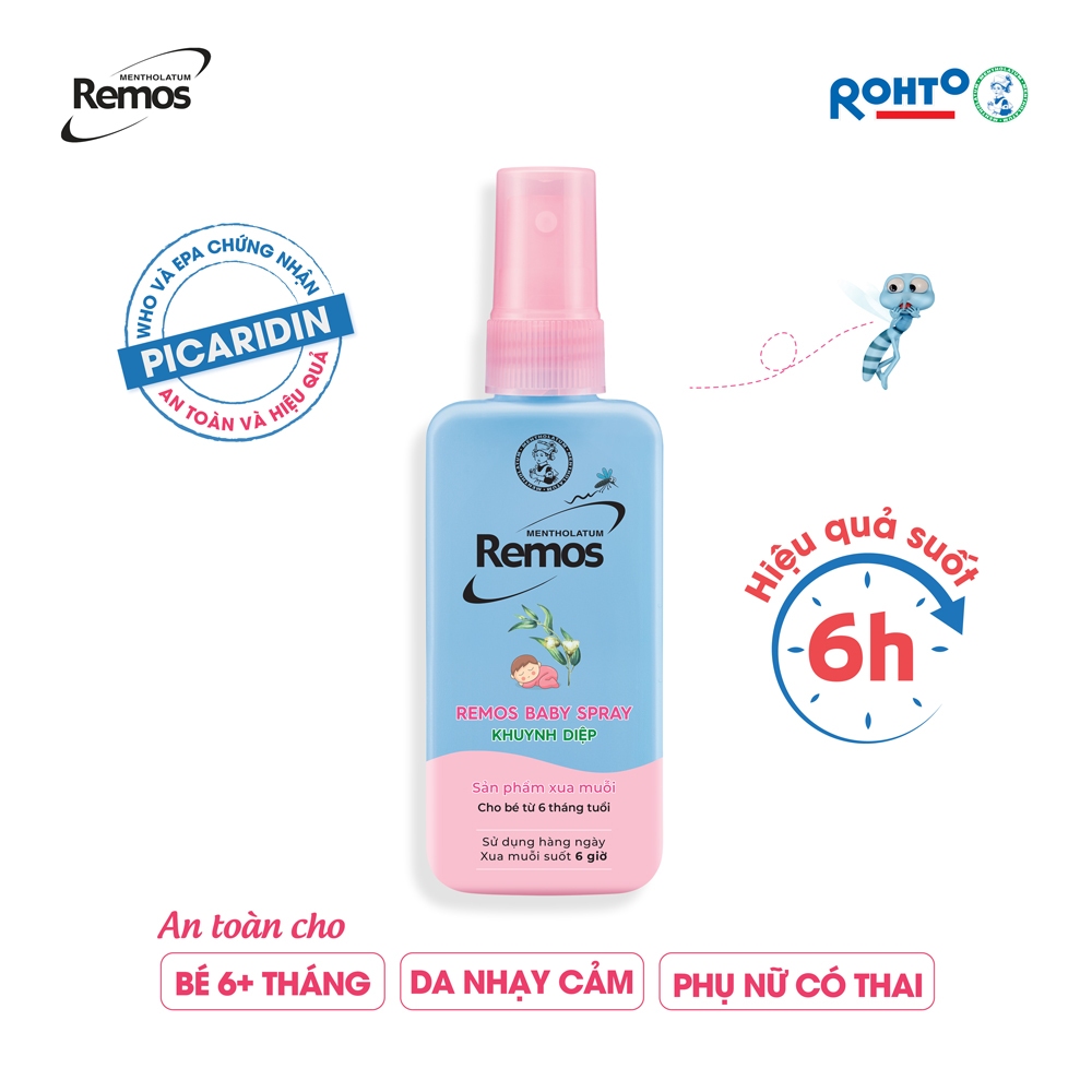 Xịt chống muỗi cho bé từ 6 tháng tuổi hương khuynh diệp Rohto Mentholatum Remos 70ml