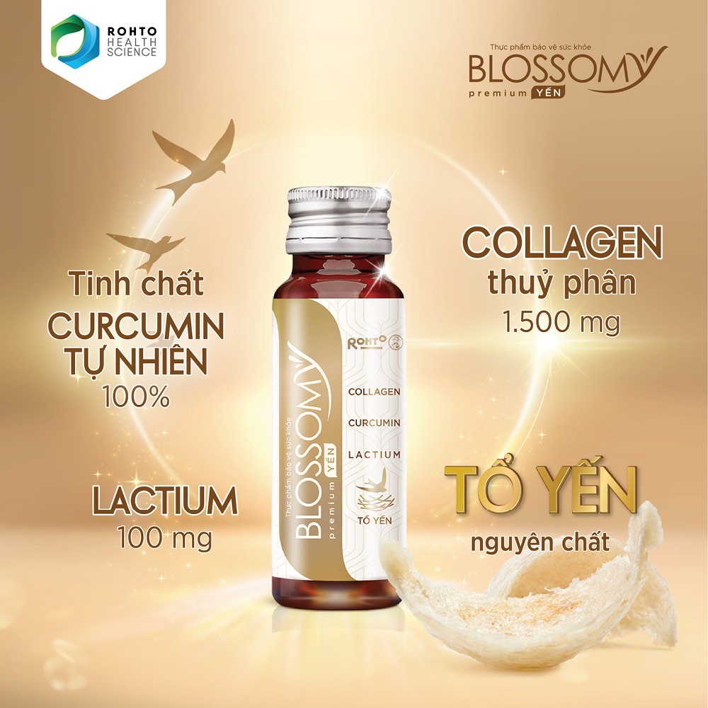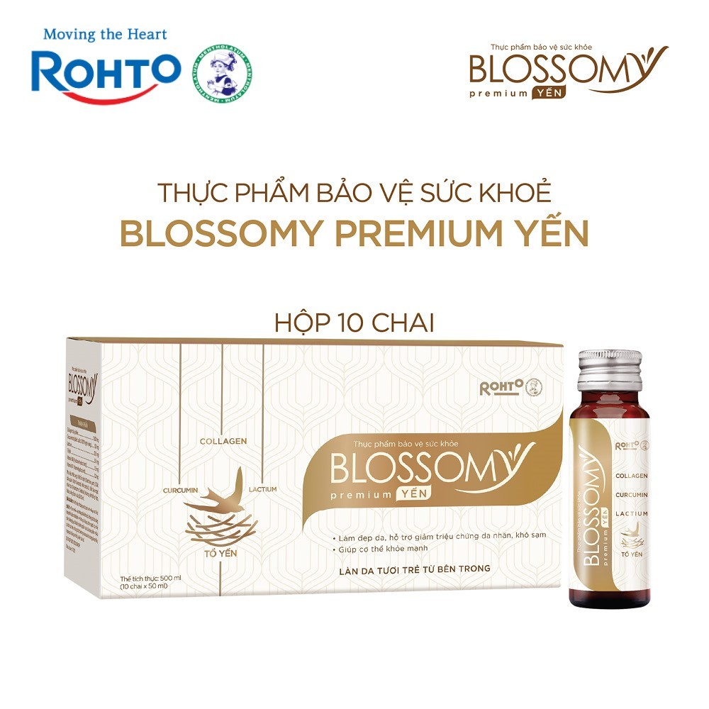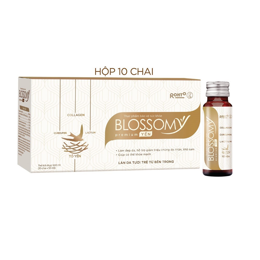 Nước uống collagen tổ yến giúp đẹp da, tăng cường sức khỏe Blossomy Premium lốc 10 chai x 50ml (date 09/10.2026)