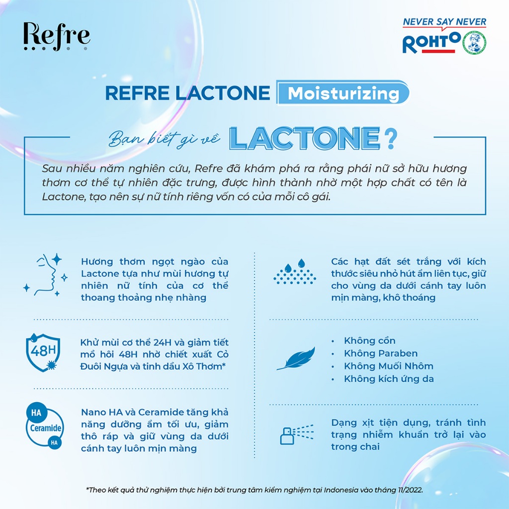 [VB] Combo 2 Xịt khử mùi, khóa mùi tỏa hương thơm tự nhiên cơ thể Refre Lactone Moisturizing 30ml