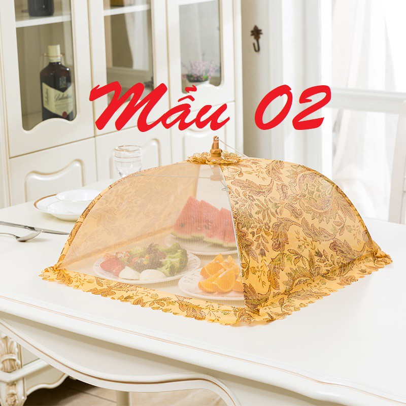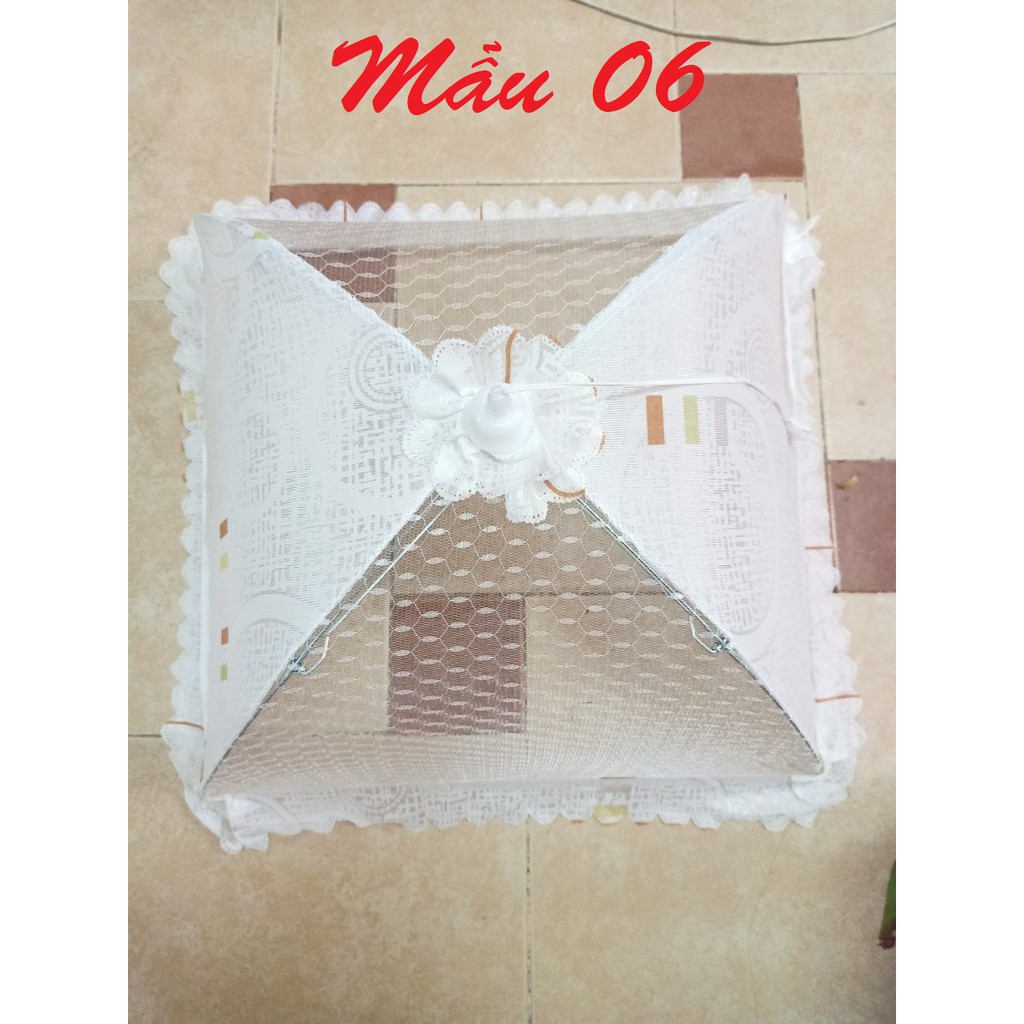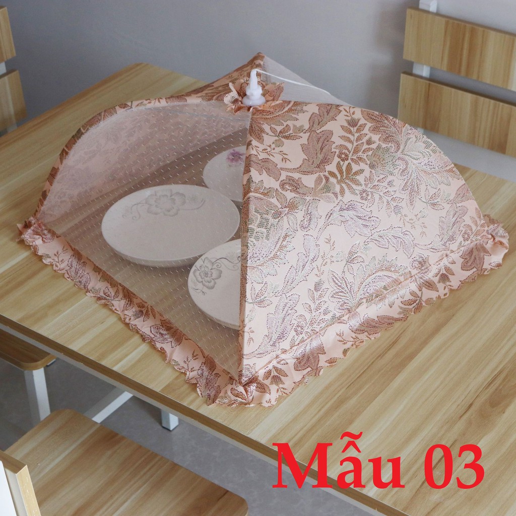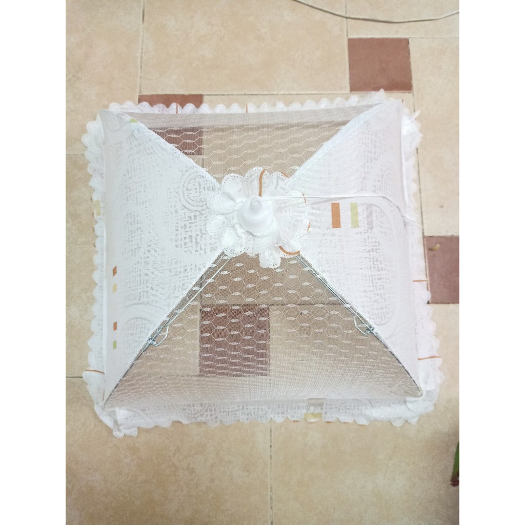 Lồng bàn vải lưới hình chữ nhật 43x47 gấp rút chống côn trùng đẹp tiện dụng