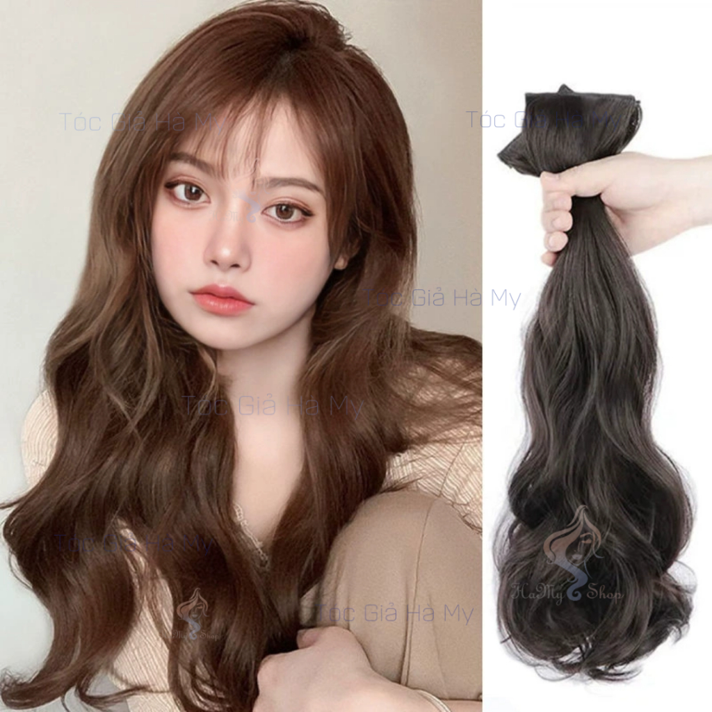 Tóc giả kẹp phím uốn xoăn sóng làm dày tóc 45cm 55cm 60cm
