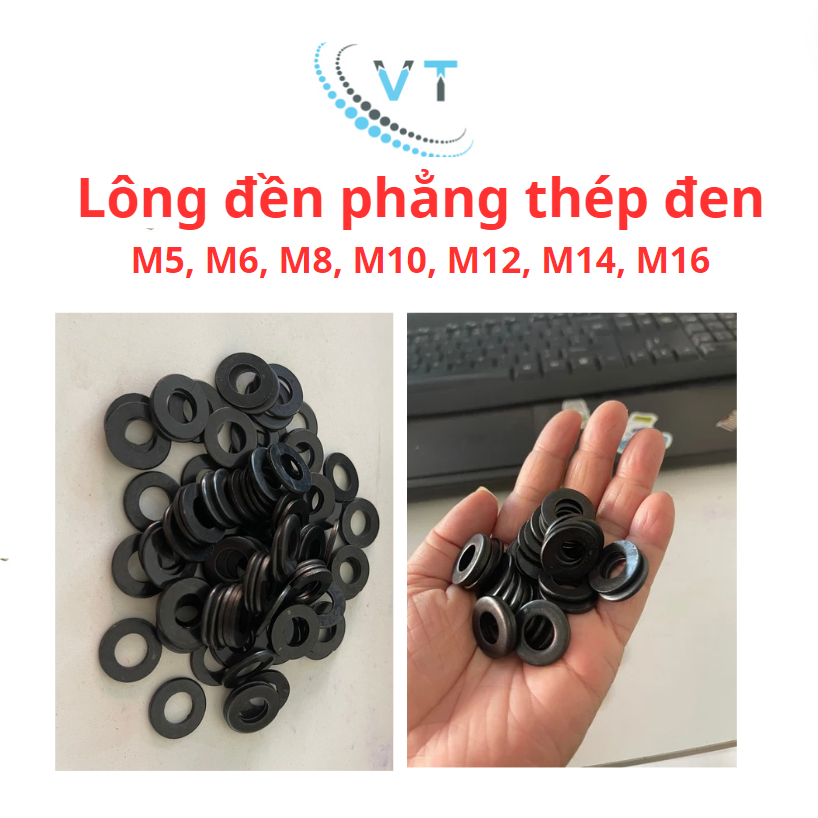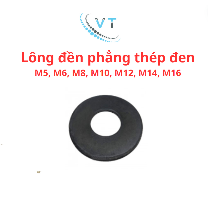Long đền tròn phẳng thép đen M6, M8, M10, M12, M14, M16