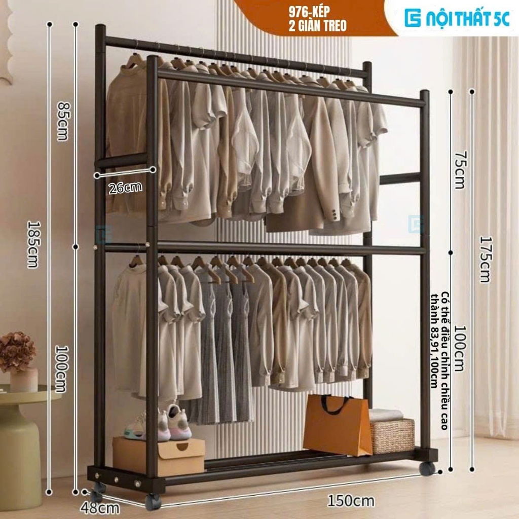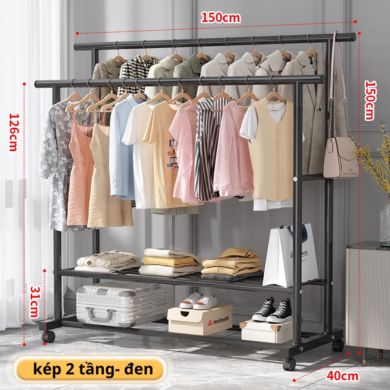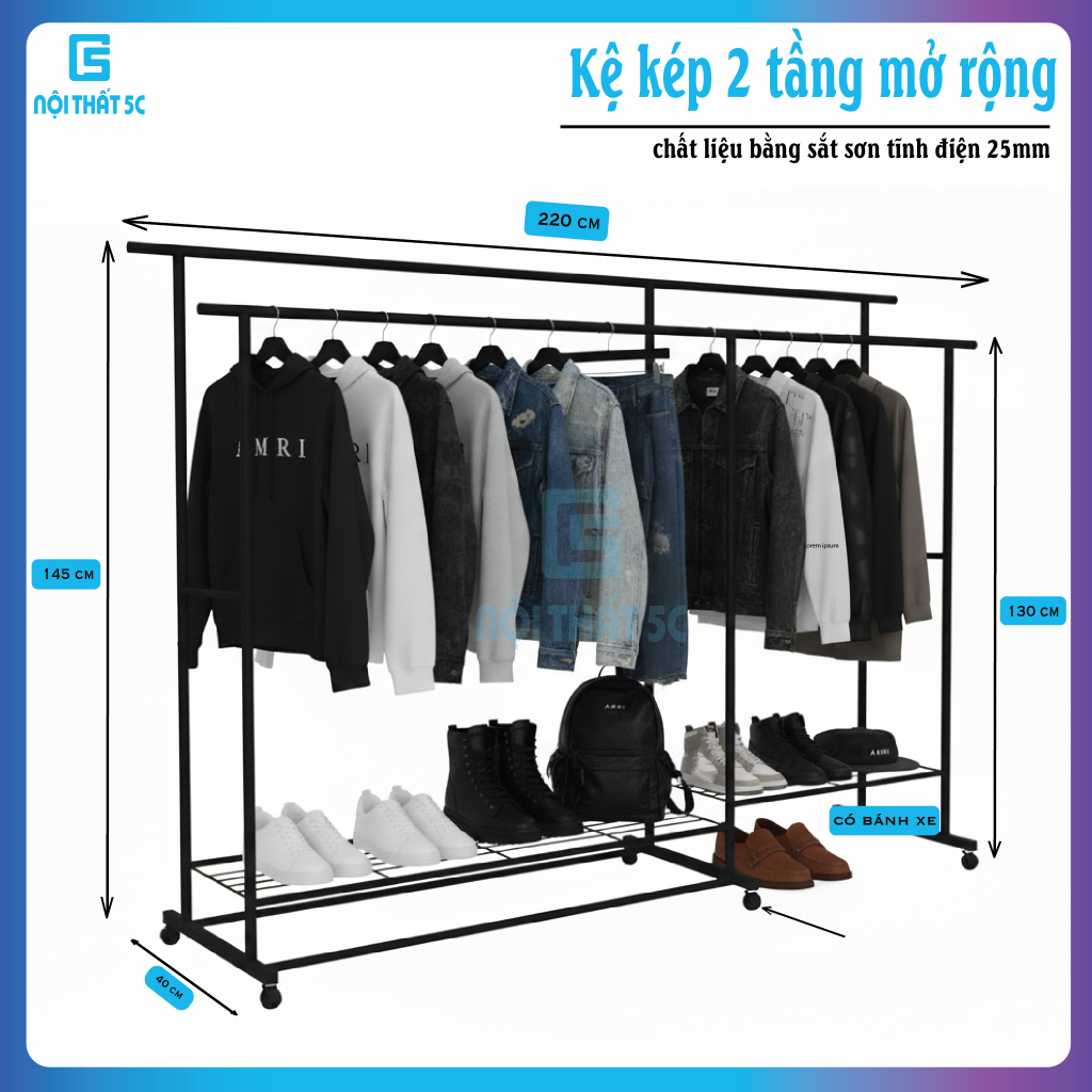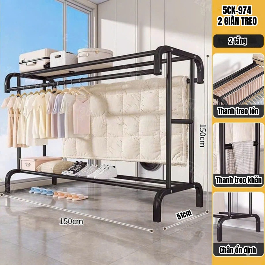 Giá treo quần áo, kệ quần áo 1 tầng, 2 tầng khung sắt sơn tĩnh điện chắc chắn tích hợp kệ để giày tiện lợi [Nội thất 5C]